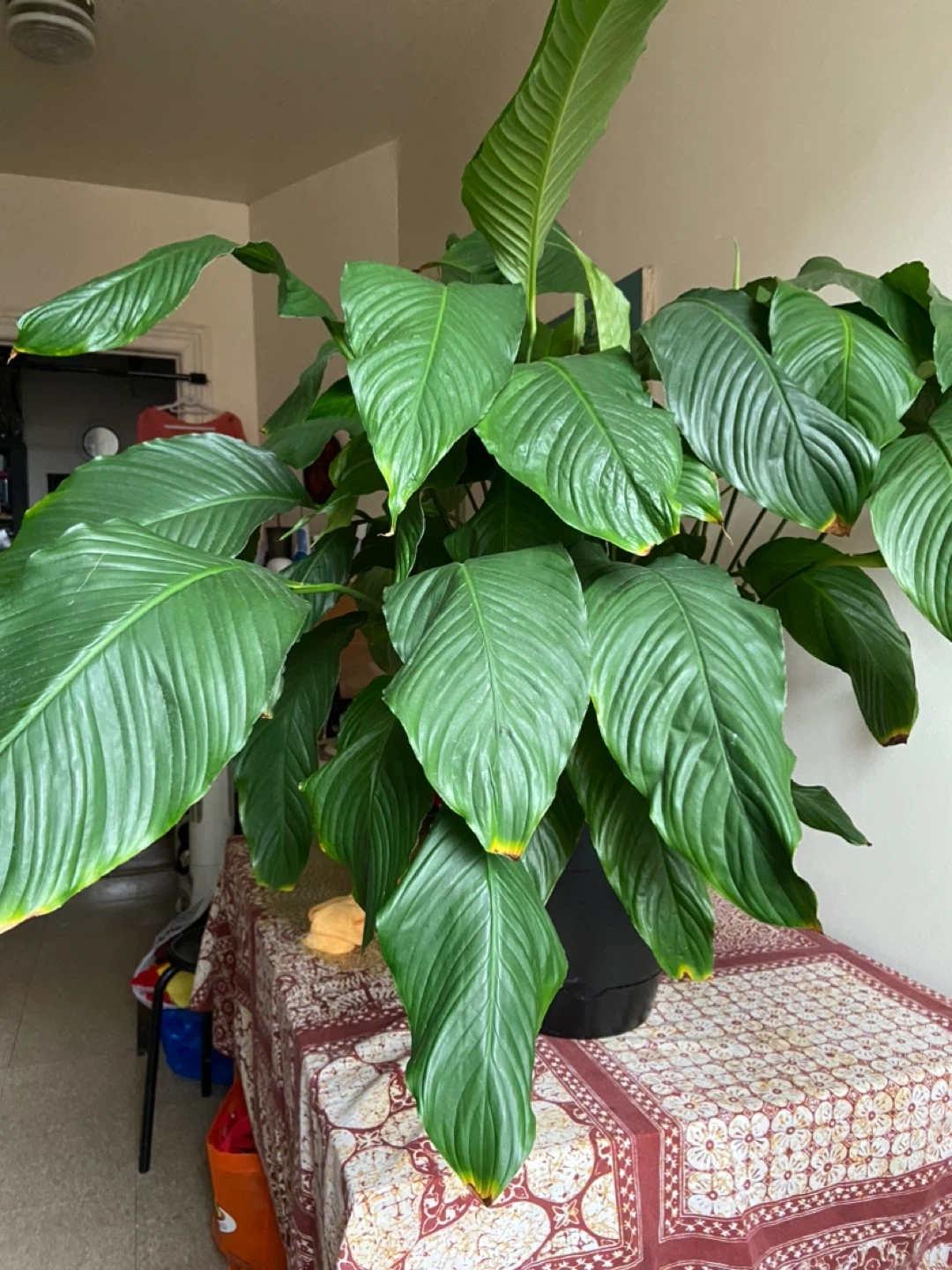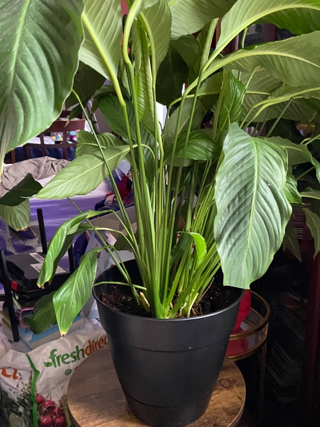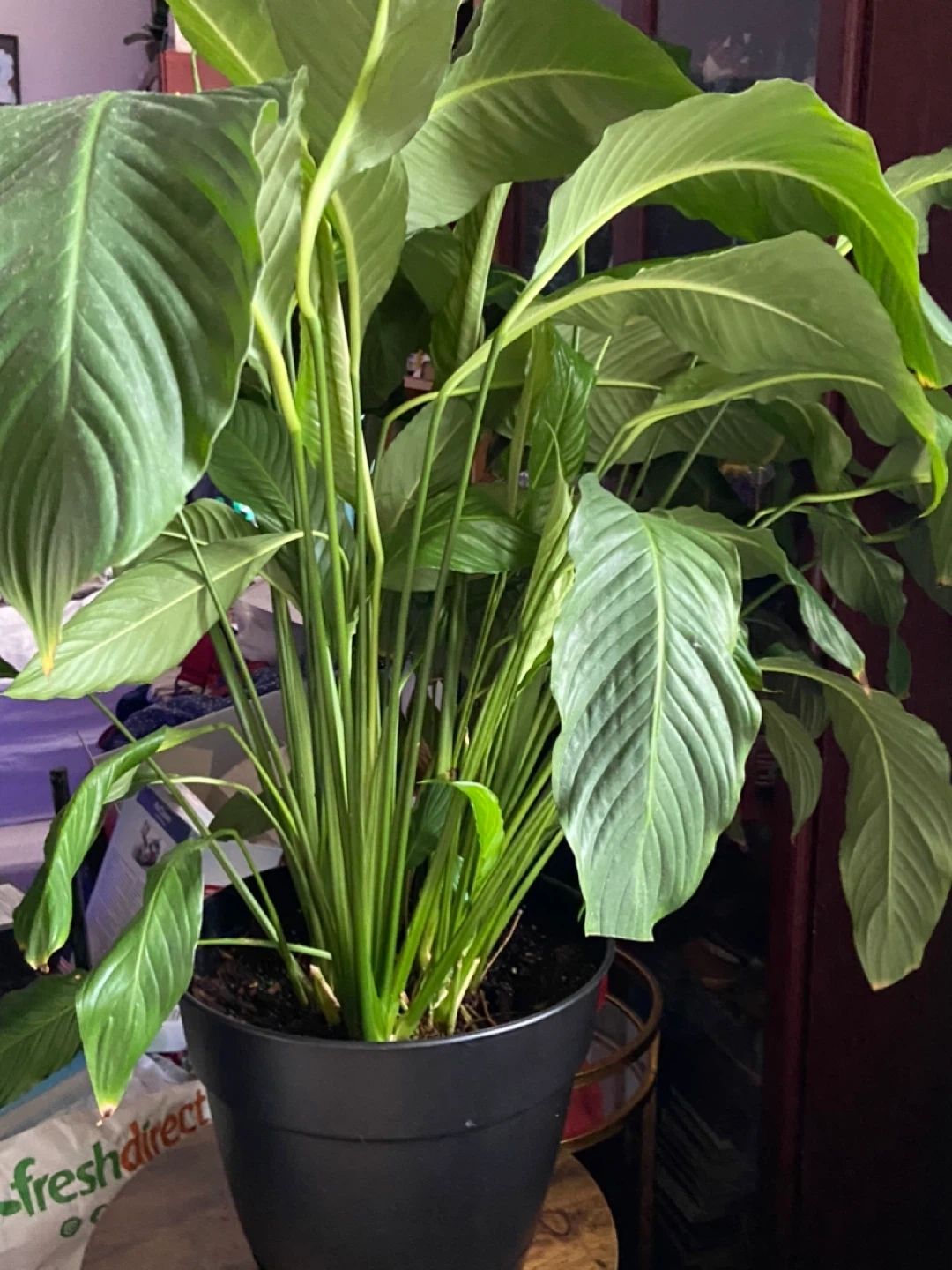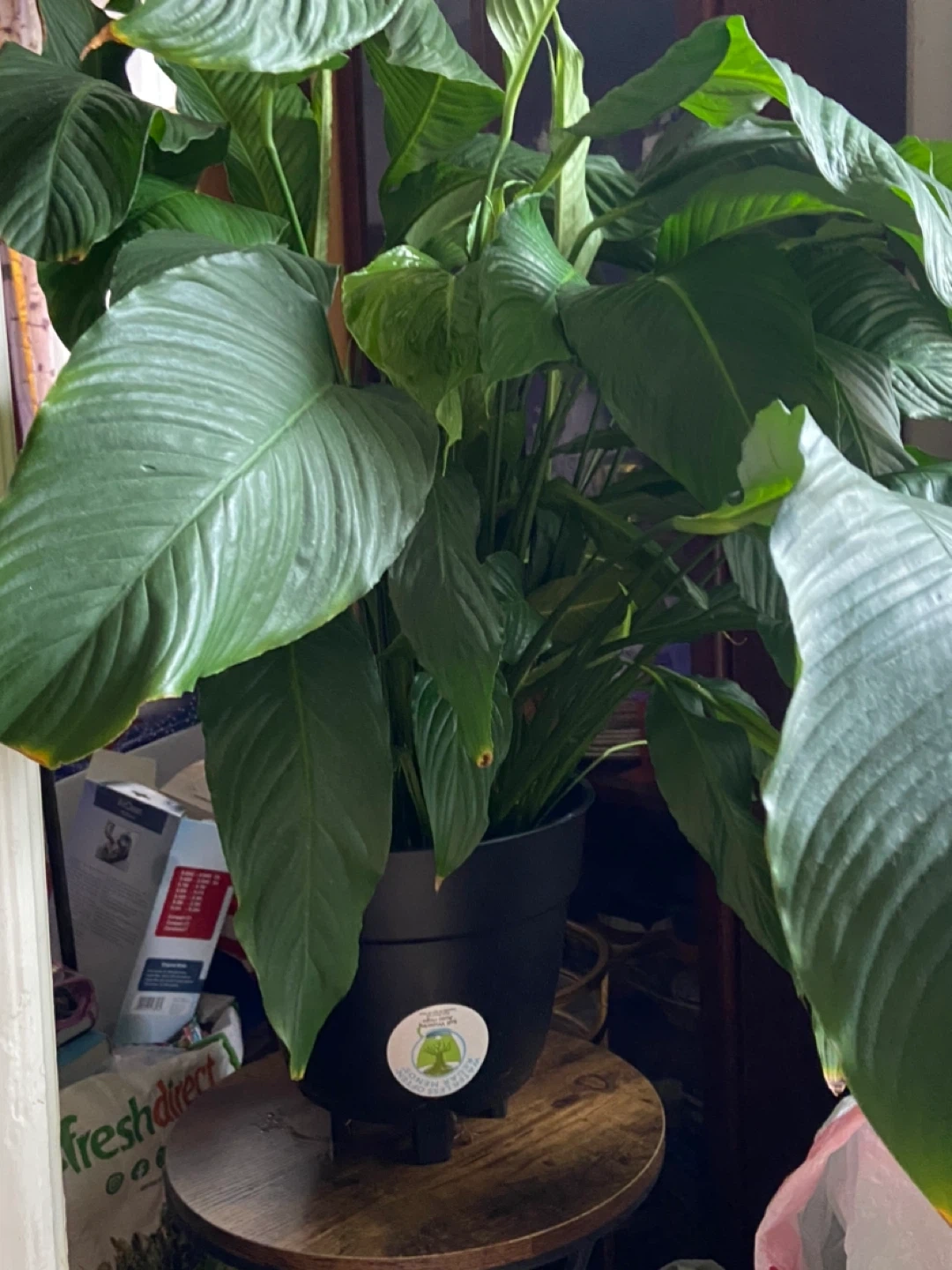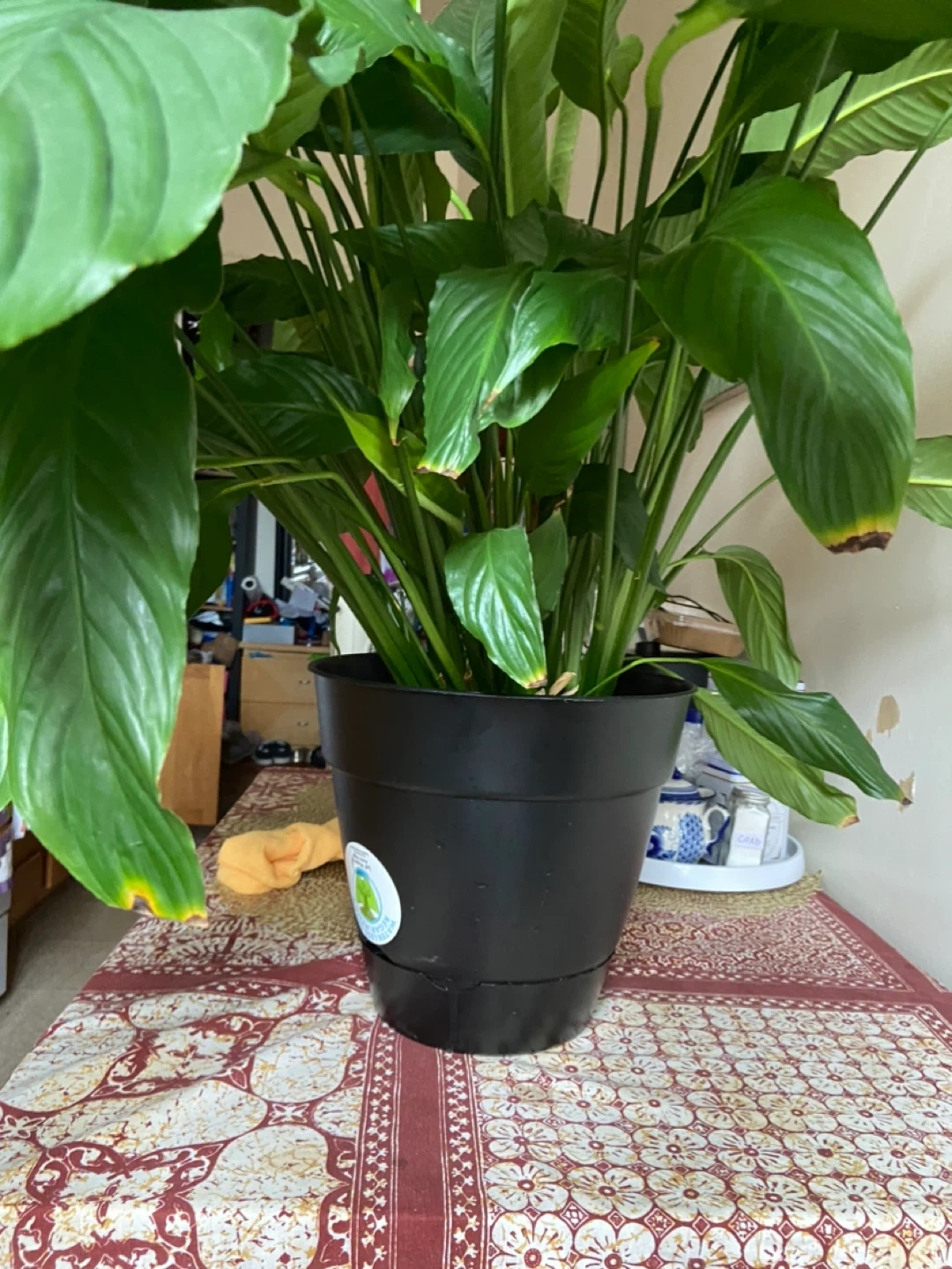 Selling a healthy peace lily plant, potted in a simple black container. It's a beautiful plant that brings a touch of nature indoors!