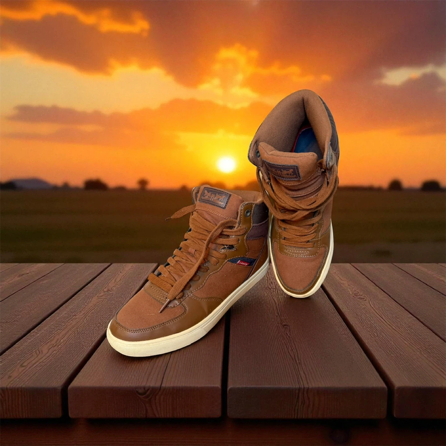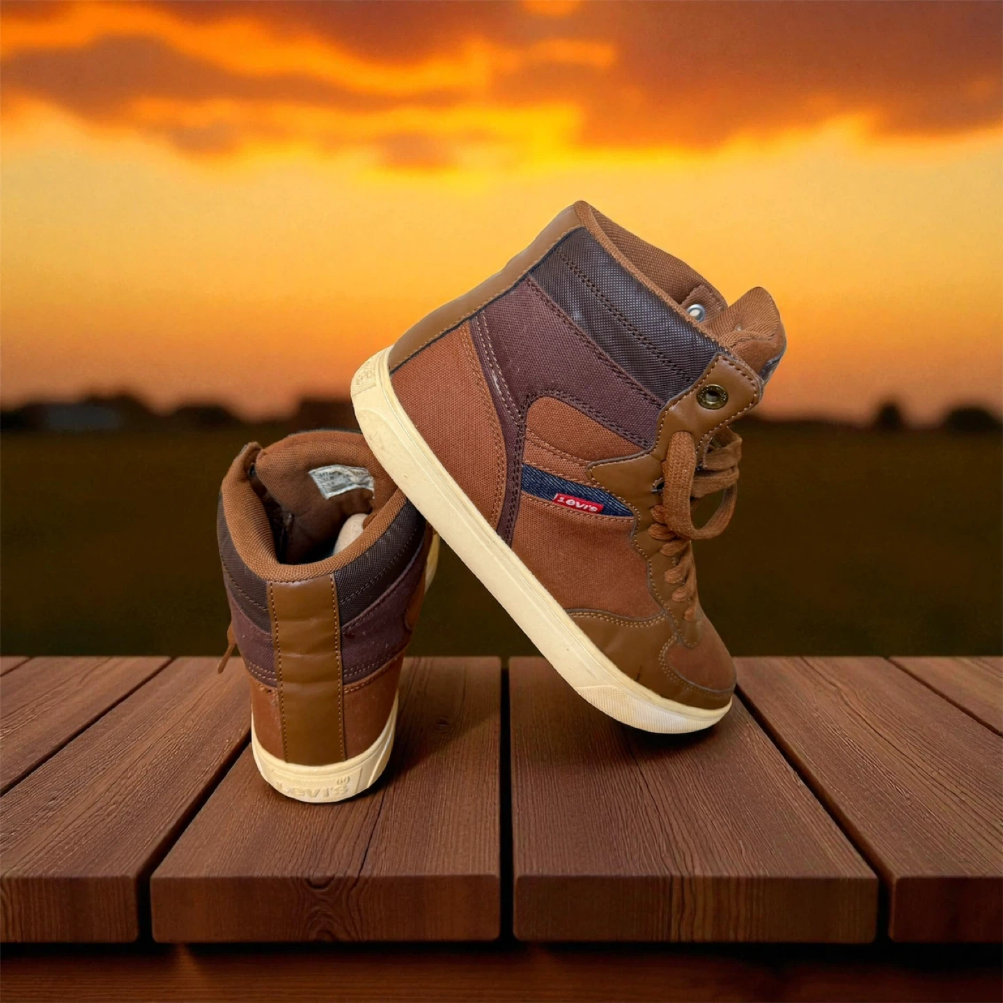 These Levi's high-top sneakers come in a versatile brown color. They feature a classic lace-up closure and a durable sole. Made with a combination of canvas and synthetic materials.