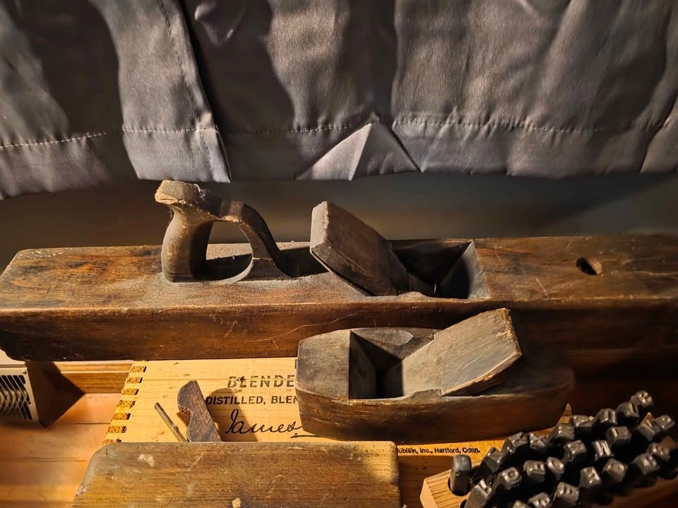 Really neat lot of antique block planes and a vintage metal workers die set with the alphabet. Located in Big Rock. One price for all pictured.