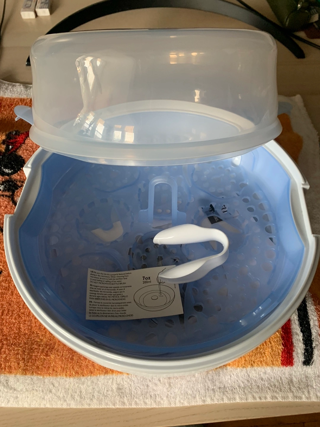 Electric baby bottle steamer. Includes tongs. Compact design. Easy to clean. Pet free home. Never used.