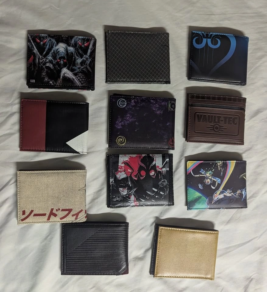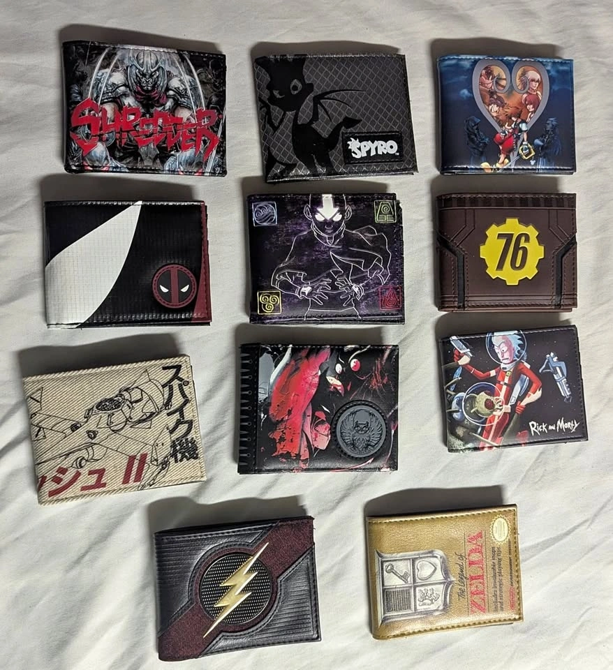 Includes wallets inspired by Deadpool, Avatar The Last Airbender, The Legend of Zelda, Rick and Morty, Kingdom Hearts, Spyro the Dragon, Cowboy Bebop, Batman: Court of Owls, and The Flash.