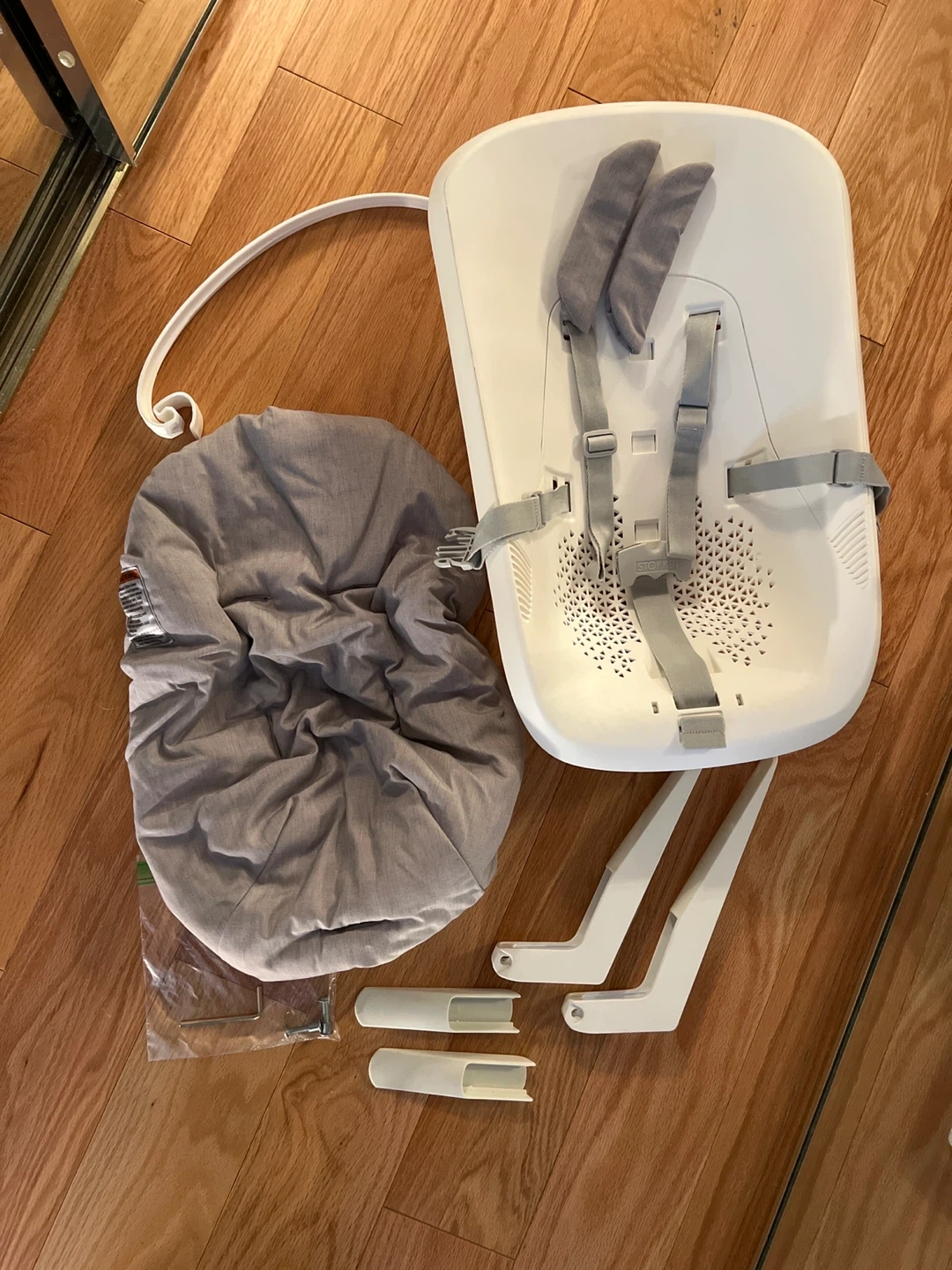 Selling the newborn attachment for the Stokke Tripp Trapp high chair! It's in great condition and includes all the necessary components for easy assembly. The cover easily washes, is freshly washed and has no spots nor marks. Included is also the toy attachment and the safety extensions for the feet.