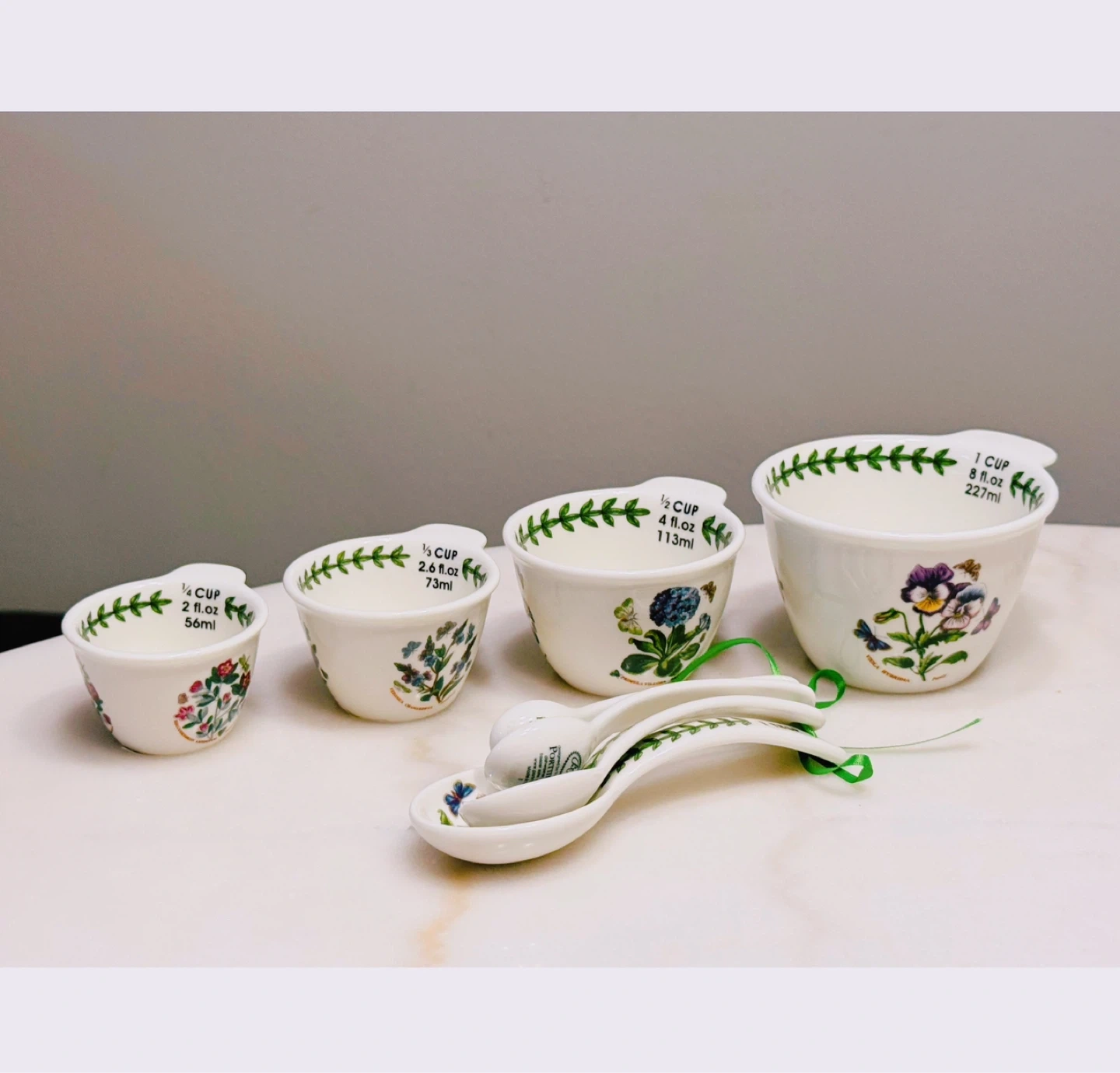 Brand new Portmeirion Botanic Garden Collection 4 Pieces of Measuring Cups & 4 Pieces of Measuring Spoons