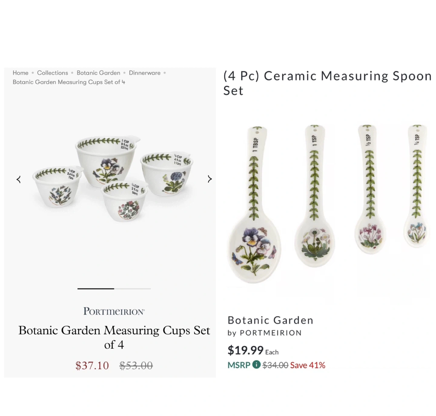 Portmeirion Botanic Garden Ceramic Measuring Cups and Spoons Set