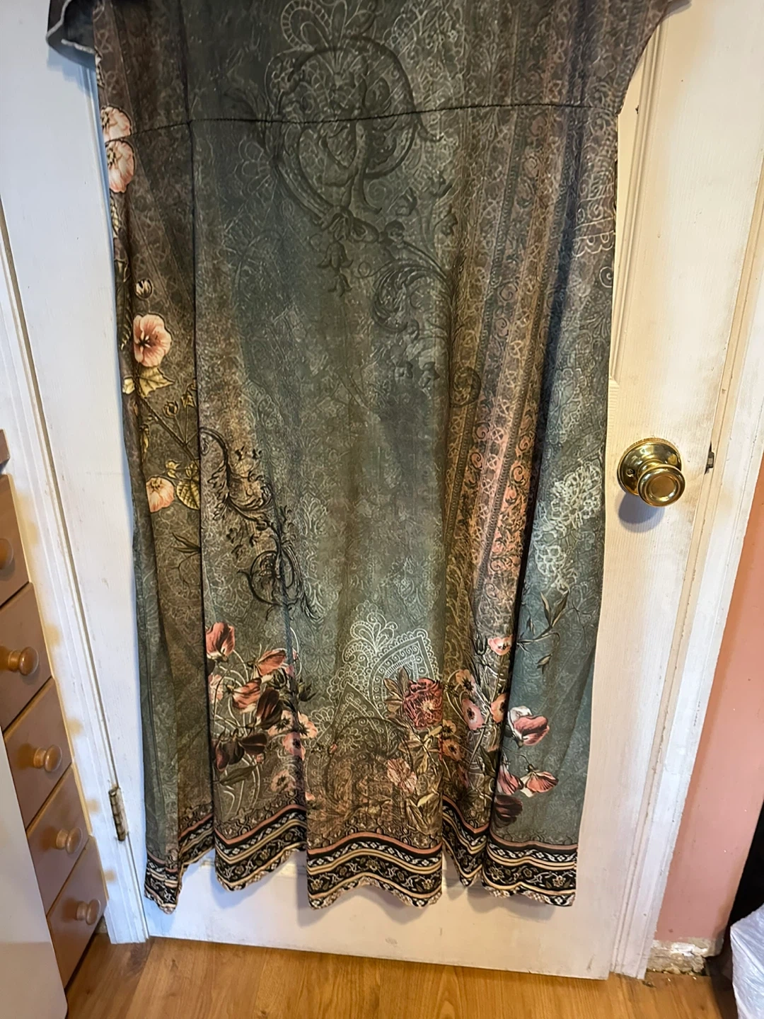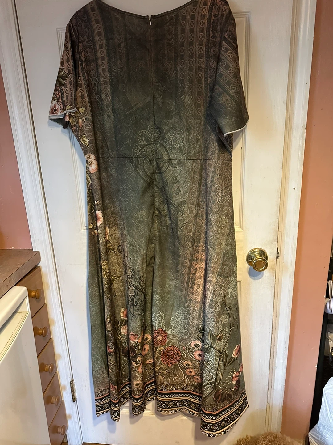 Selling a beautiful green maxi dress with a floral print. It's a size XXL. Zipper back. BRAND NEW!!!