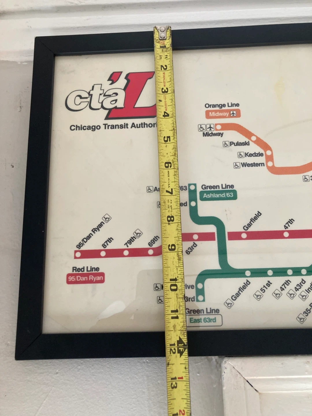 Selling a framed vintage CTA 'L' Chicago Transit Authority map! This map predates the pink line. The frame is black and the map shows the different train lines. It measures approximately 46 inches wide and 12 inches tall. Great for any Chicago enthusiast! Price is firm, thanks!