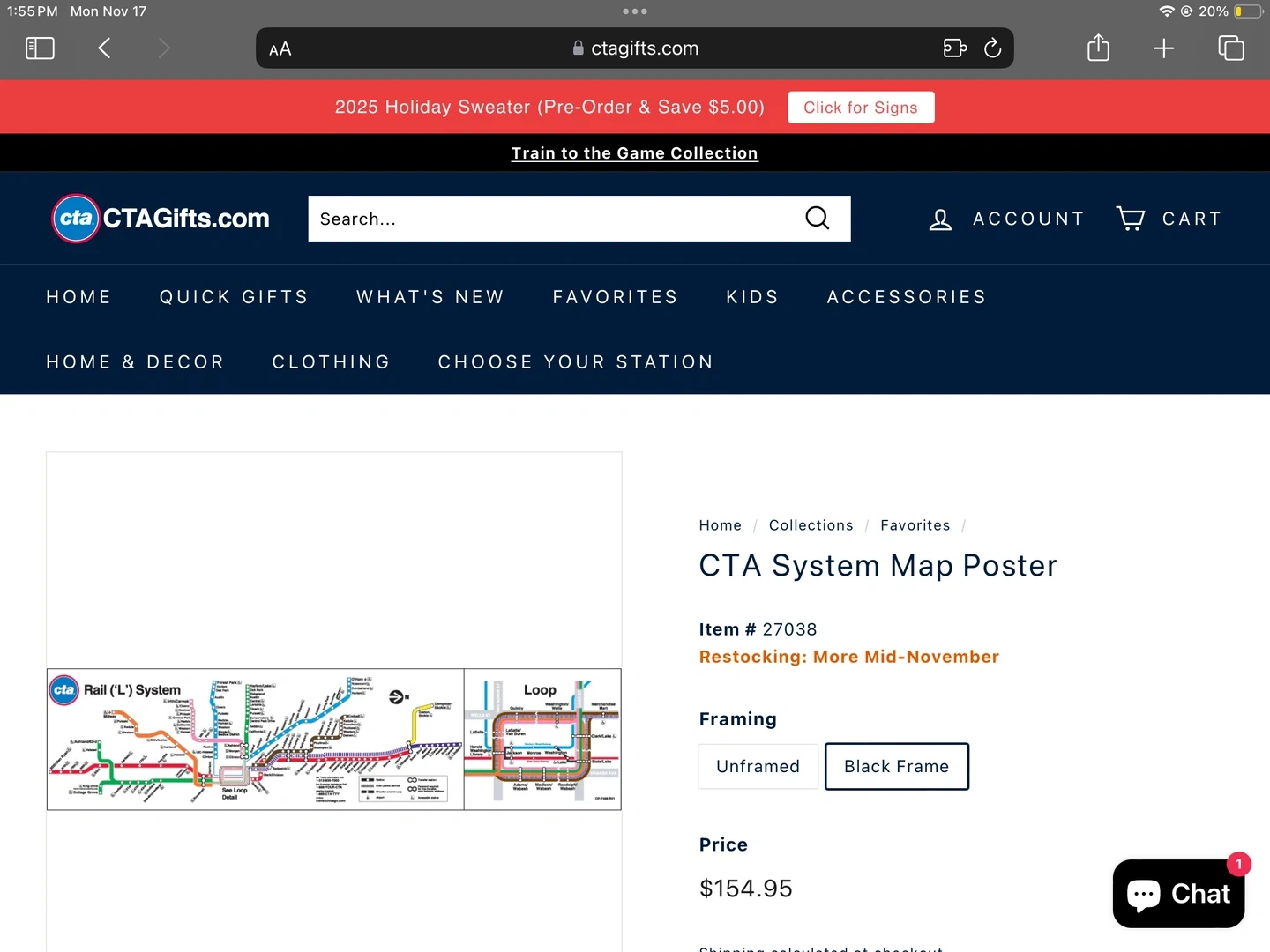 CTA early 00’s 'L' Chicago Transit Authority Framed Map