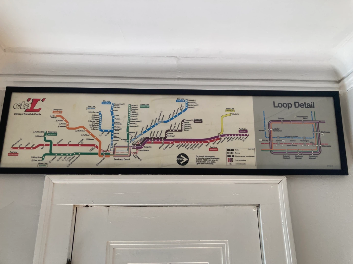 Selling a framed vintage CTA 'L' Chicago Transit Authority map! This map predates the pink line. The frame is black and the map shows the different train lines. It measures approximately 46 inches wide and 12 inches tall. Great for any Chicago enthusiast! Price is firm, thanks!