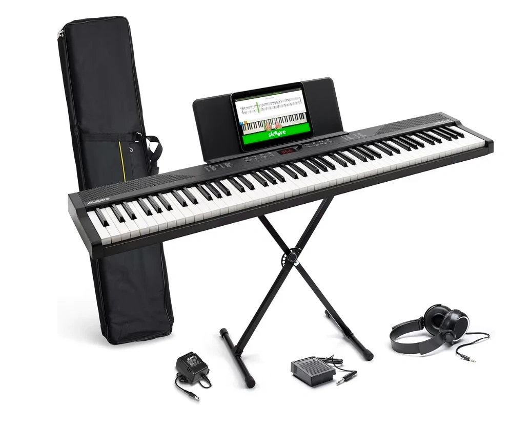 Selling an Alesis Recital Pro 88-Key Portable Digital Piano. It comes with a stand, sustain pedal, headphones, and power adapter. Perfect for beginners or experienced players looking for a portable option!