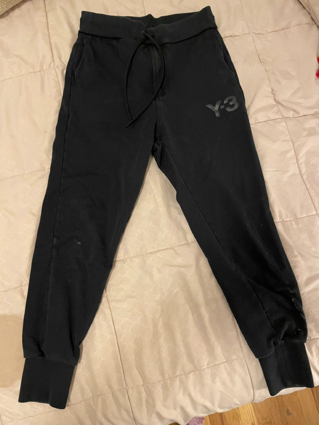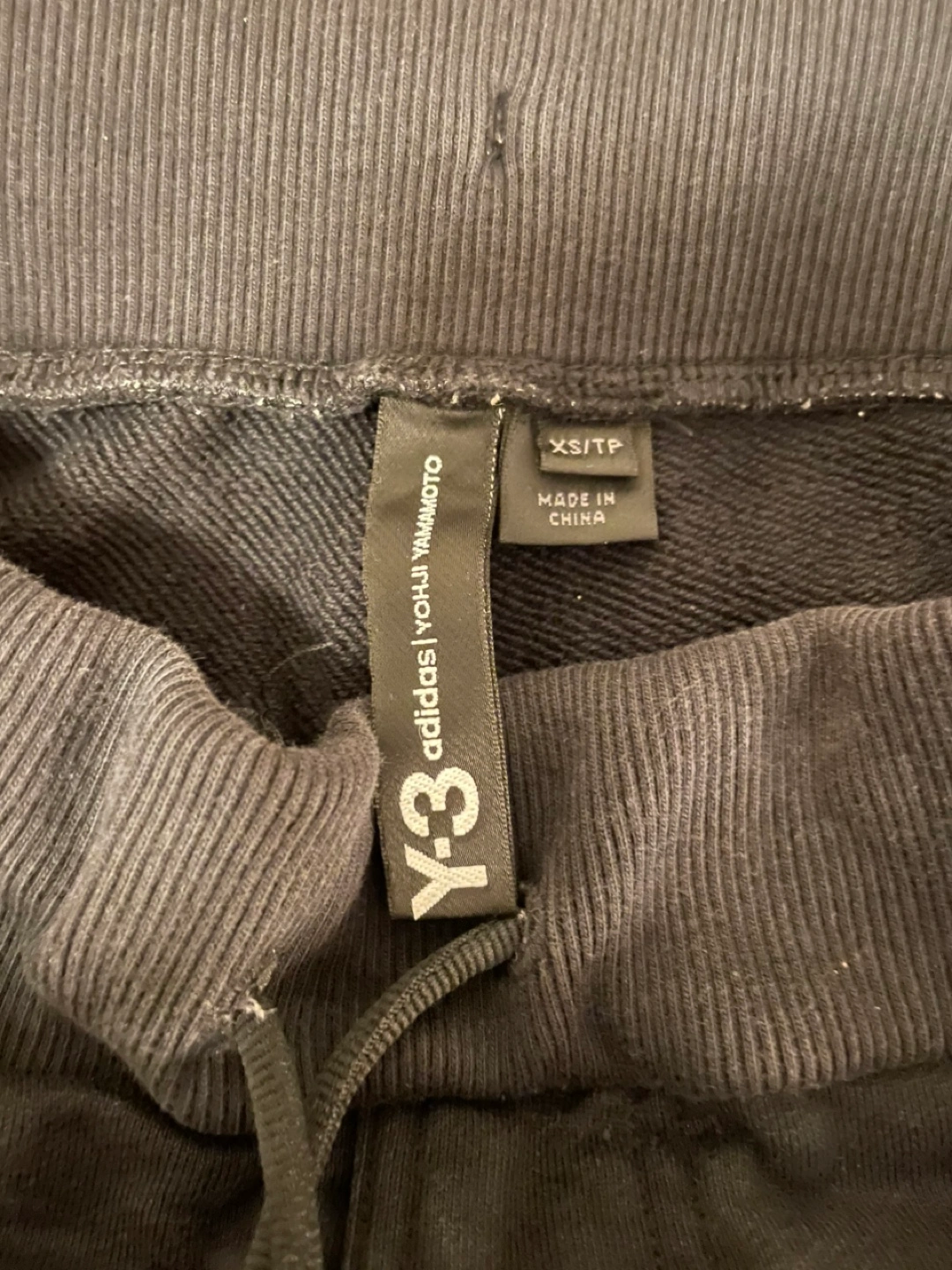 Black Y-3 joggers. Size XS/TP. Drawstring waist. Cuffed ankles.