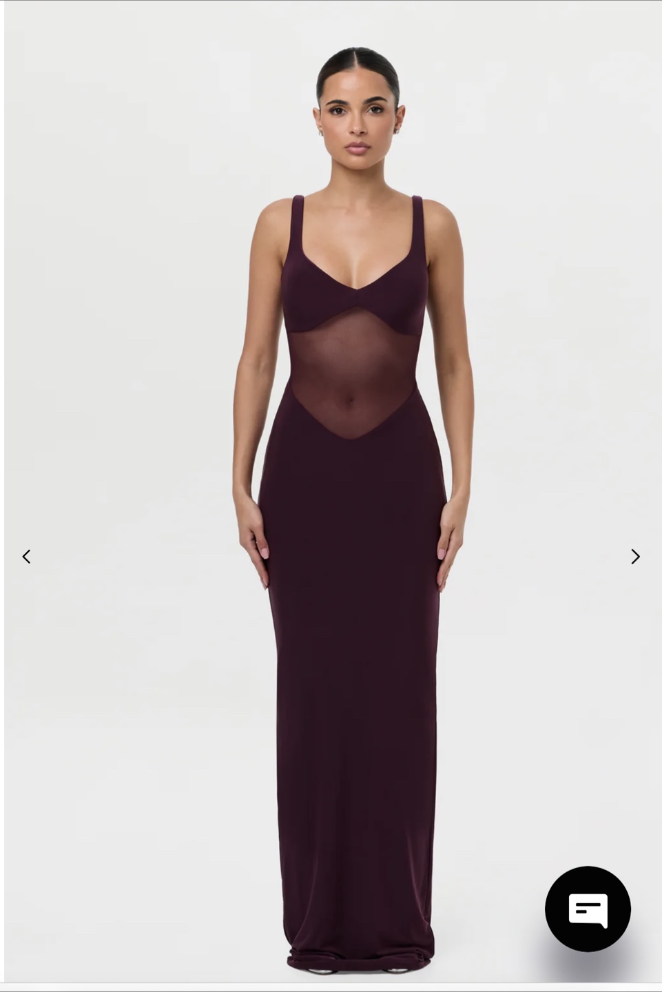 This head-turning maxi dress has arrived to elevate your wardrobe and style. Features a v-neckline, medium tank shoulder straps and a mesh contrast at your core. Molds to your body with a v-waist to accentuates your shape. No matter the plans, you'll be looking unforgettable every time.