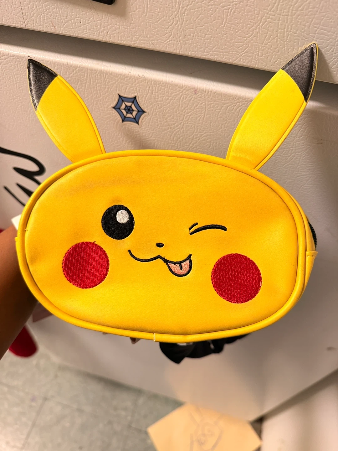 This is a fun yellow fanny pack featuring Pikachu's face! It's a great accessory for Pokemon fans. The adjustable strap makes it easy to wear around your waist.