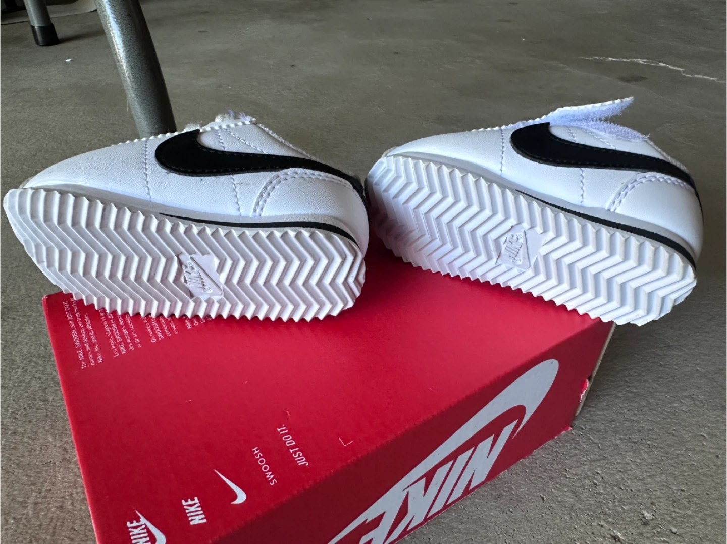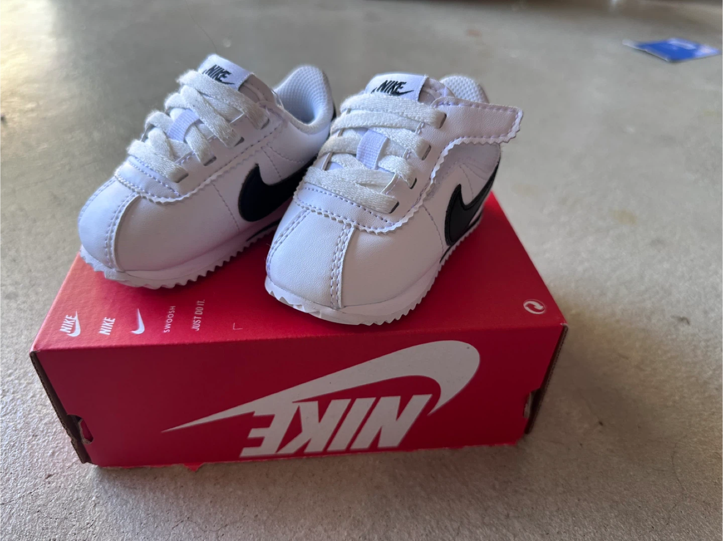 These adorable Nike Cortez Basic SL (TD) baby shoes are in great condition and ready for a new little owner! They come in a classic white and black colorway and include the original box. Perfect for your little one's first steps!