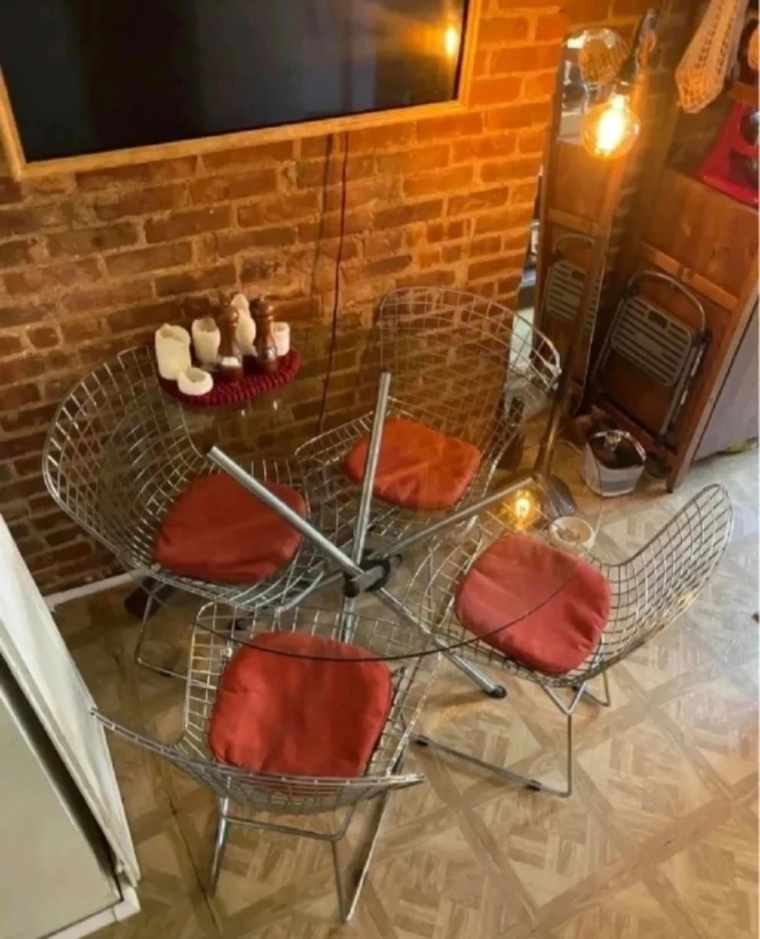 Table Set -4 Wire Frame Accent Chair with Red Cushion