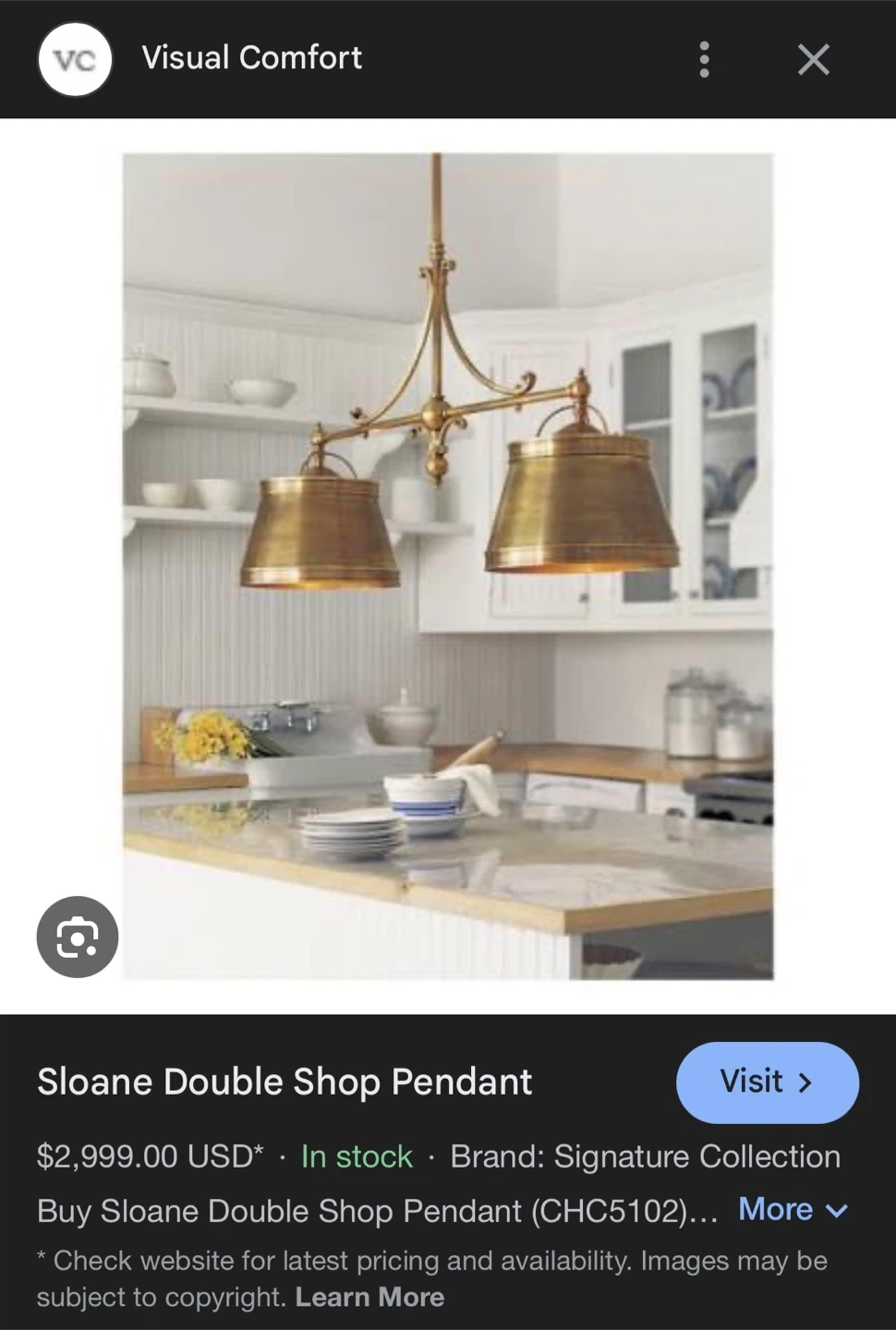 Visual Comfort Sloane Double Shop Pendant Light Fixture