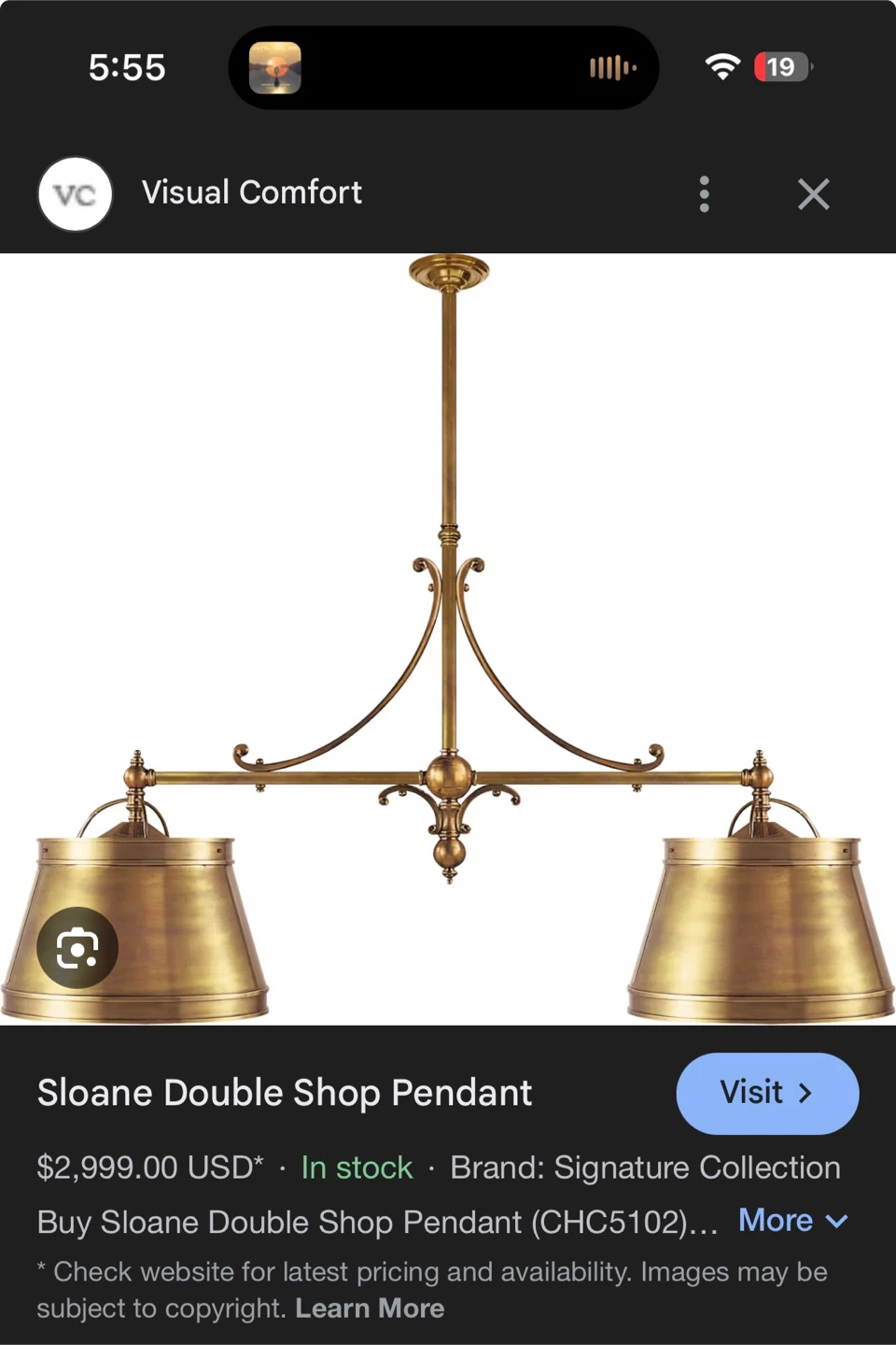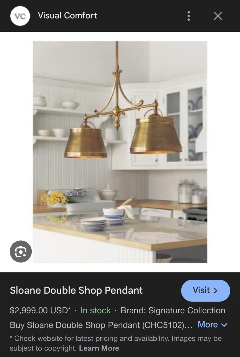 Visual Comfort Sloane Double Shop Pendant Light Fixture