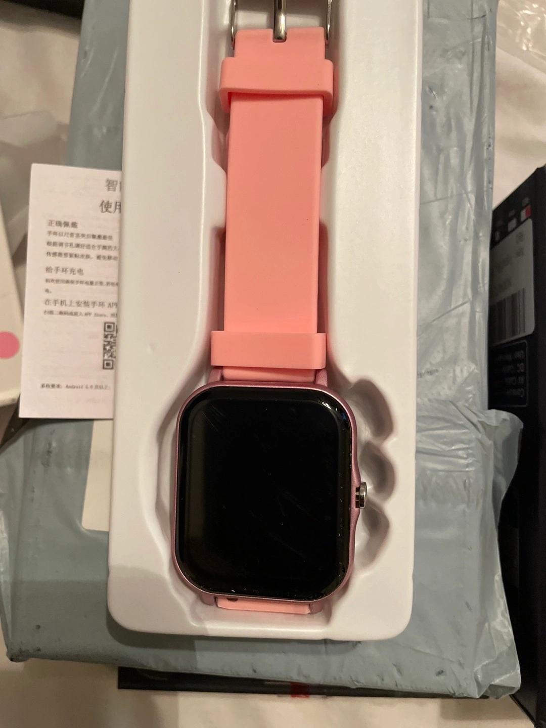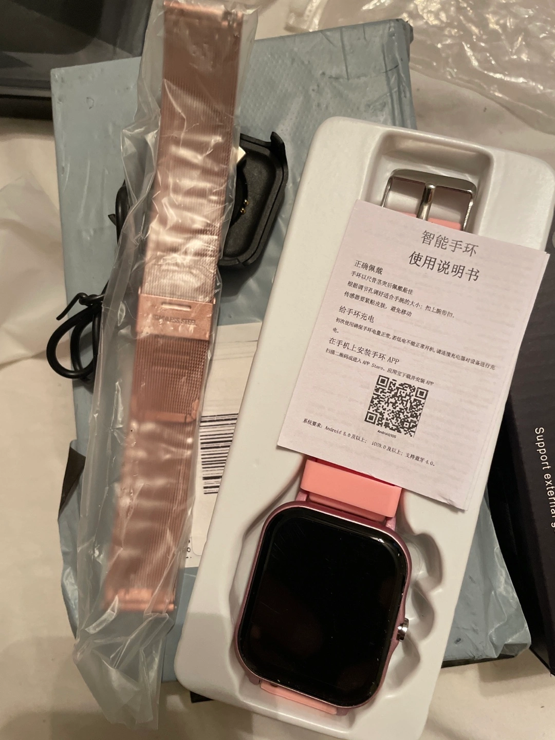 Selling a pink smart watch. It comes with an additional watch band and charging accessories. Please let me know if you have any questions!