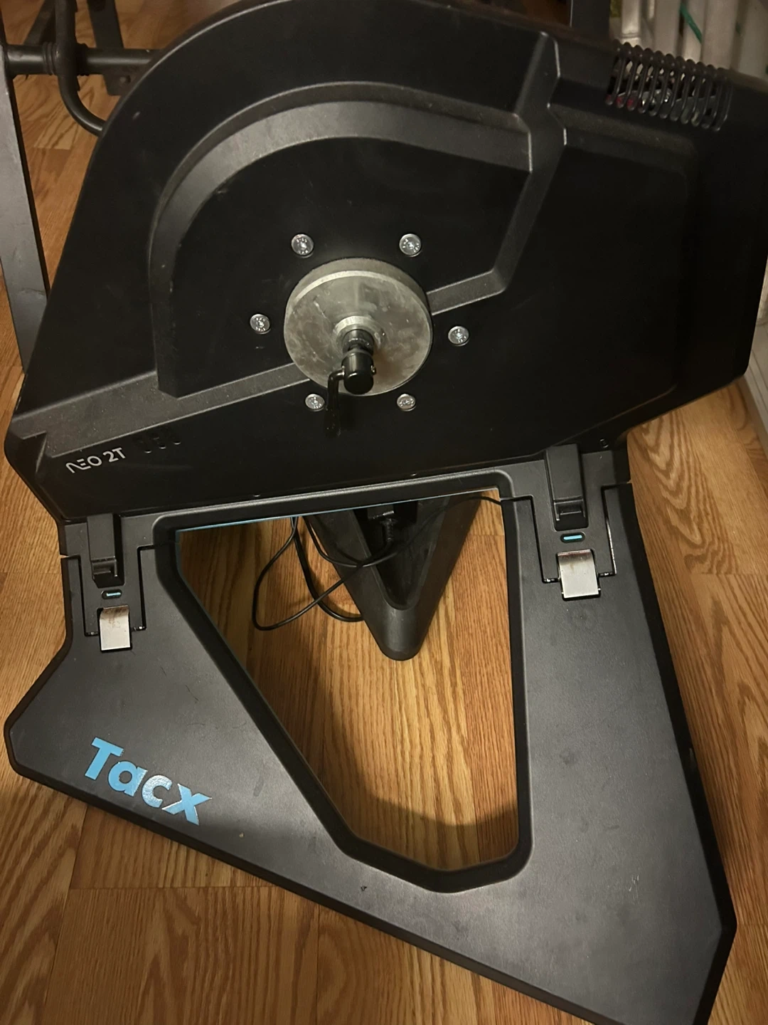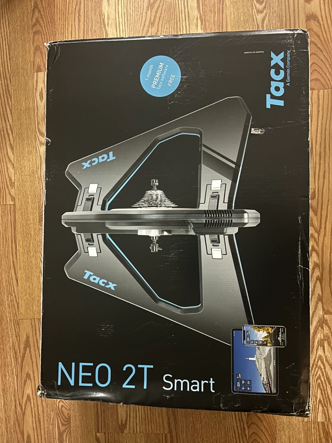 Tacx Neo 2T Smart bike trainer, a powerful and realistic indoor cycling experience. This direct-drive trainer offers a max resistance of 2200 watts and simulates gradients up to 25%. It's designed for accurate measurement of speed, cadence, and power. Includes original box.