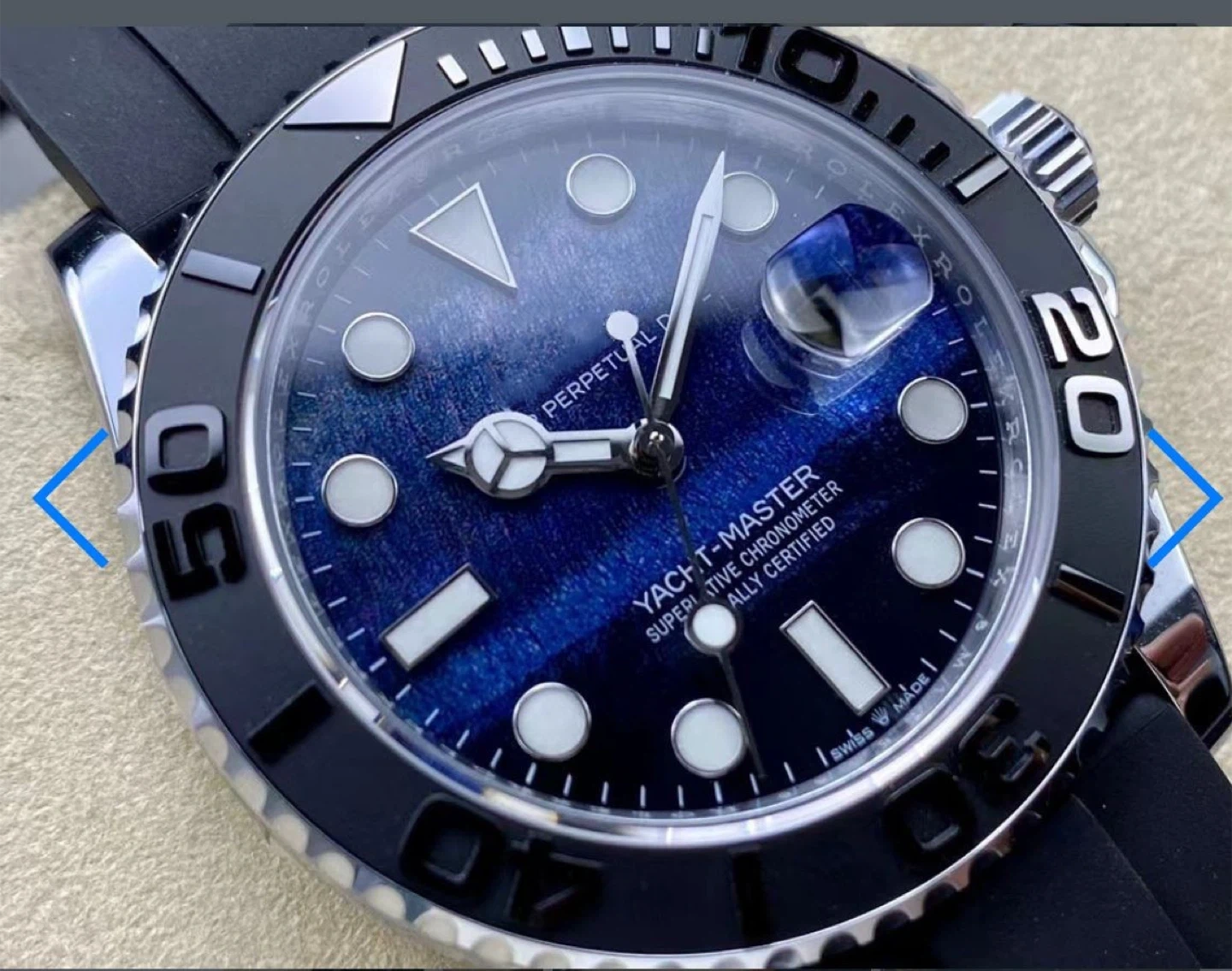 Yacht master Blue Dial Black Rubber Strap