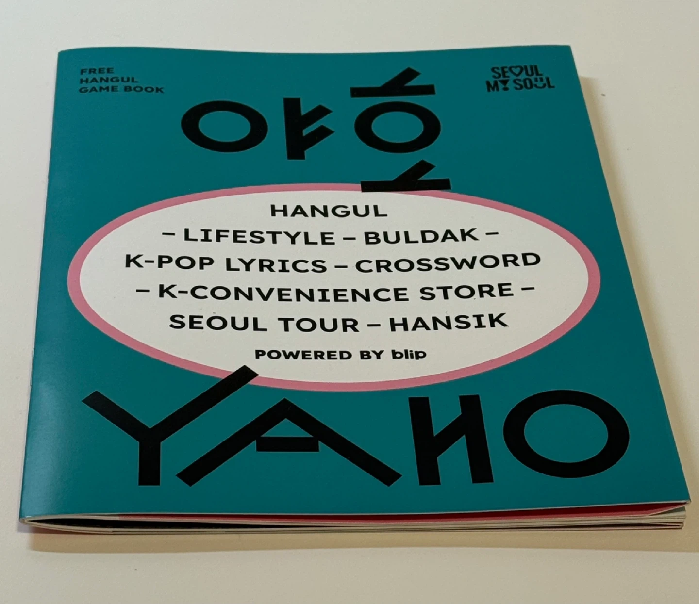 10Hi 82DE!!! YAHO free Hangul game book features lifestyle, buldak, K-pop lyrics, crossword, K-convenience store, Seoul tour, and Hansik. Featuring 82MAJOR!