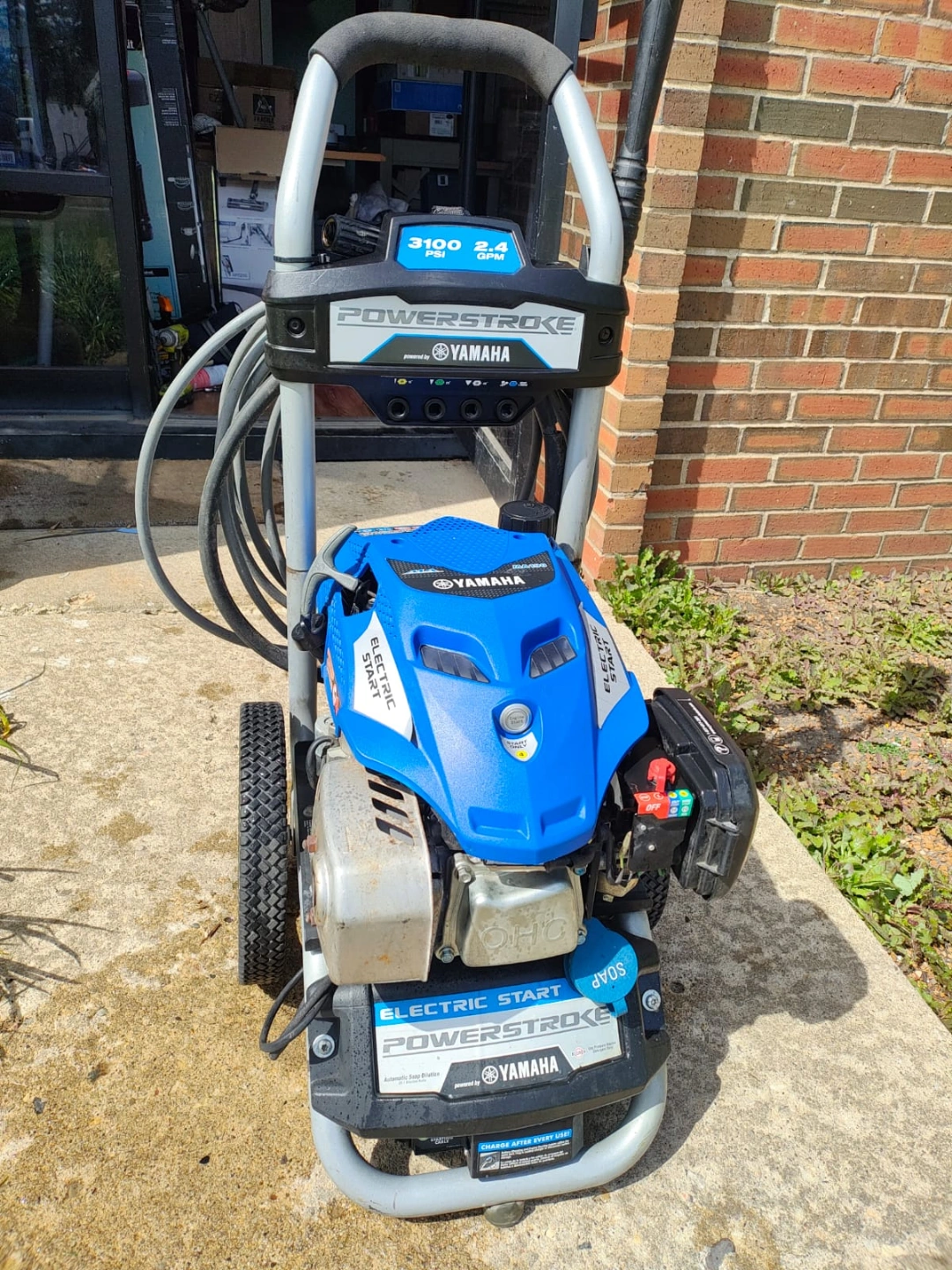 YAMAHA Powered Electric Start 3100PSI Gas Pressure Washer The PowerStroke 3100 PSI 2.4 GPM Pressure Washer is equipped with a Yamaha 189cc Commercial Grade Engine with Electric Start for ease of use, and a Battery Maintainer to keep the included battery charged in between uses so you are always ready to go and maintain your outdoor living space. Used CERTIFIED With WARRANTY EASY FINANCING AVAILABLE