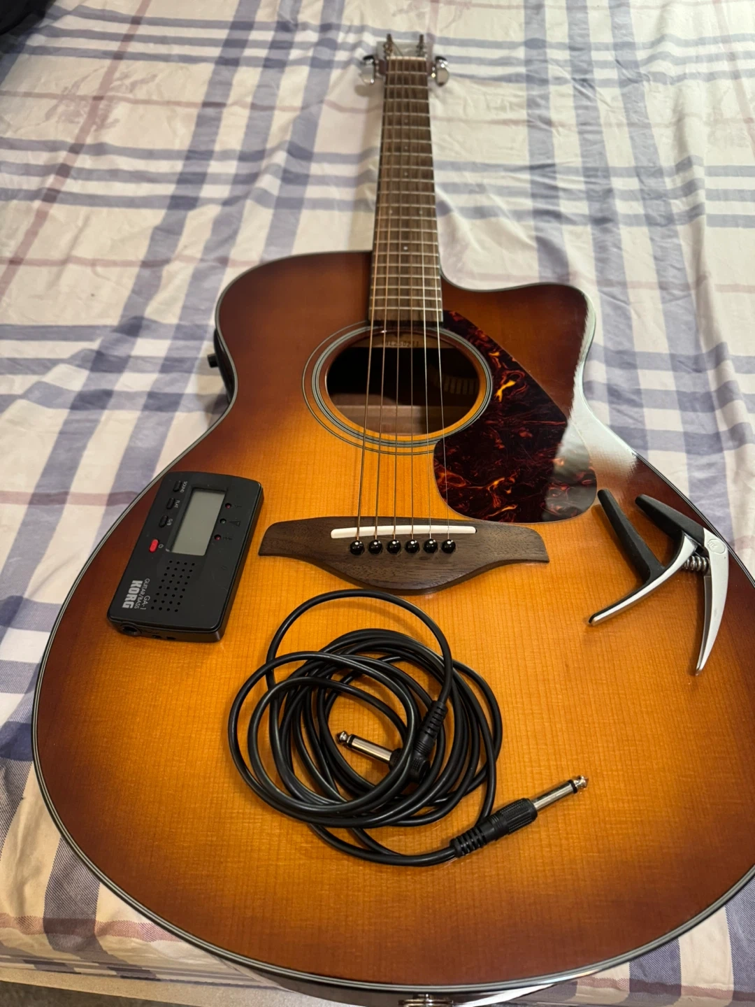 10Selling a Yamaha acoustic-electric guitar. It comes with a case, tuner, and cable. Perfect for anyone looking to play!