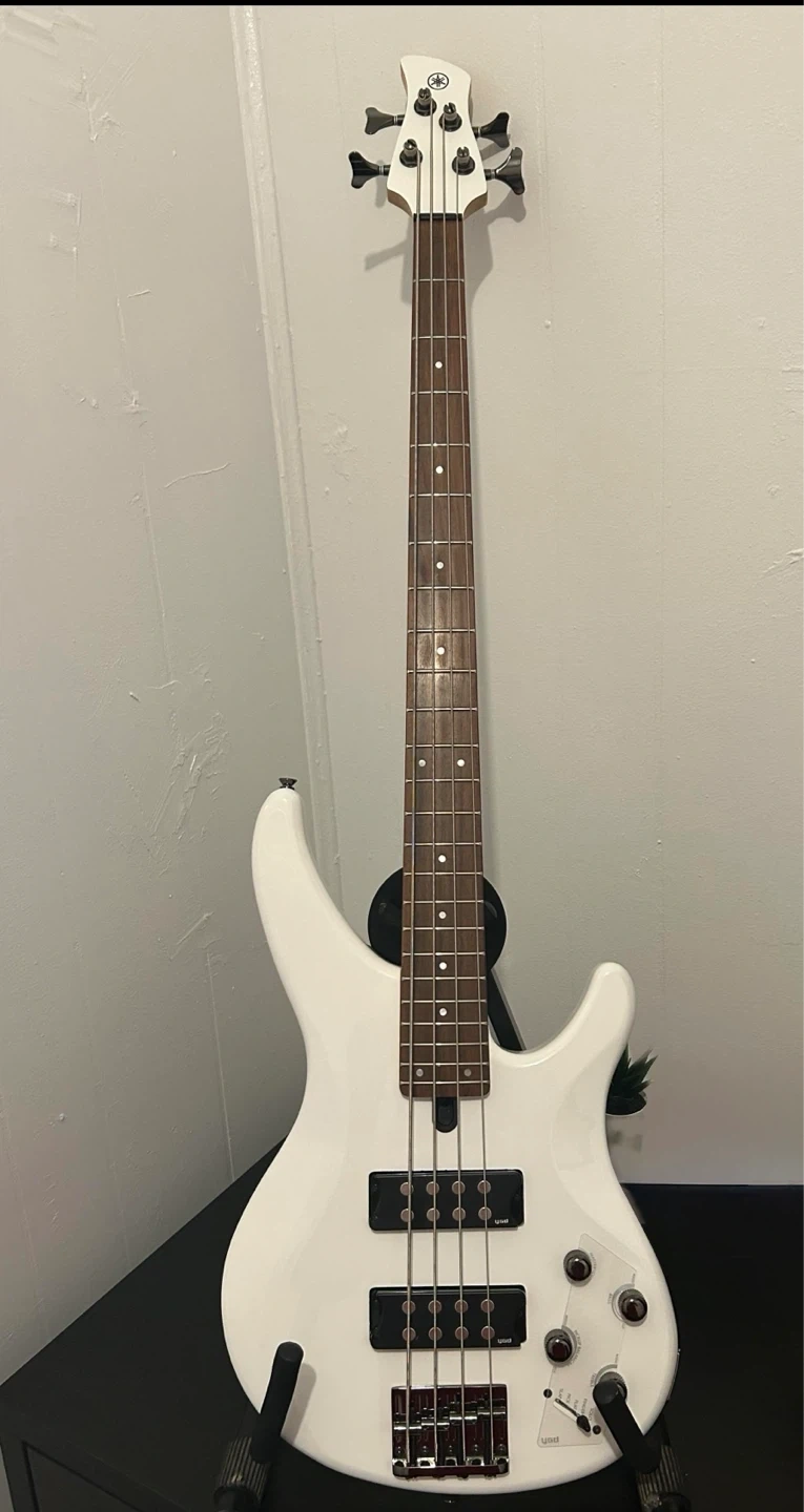 5Vendo un bajo Yamaha TRBX174 en blanco. ¡Está en gran forma y listo para jugar! Este bajo es conocido por su cómodo mástil y su sonido versátil, lo que lo hace perfecto para músicos experimentados. ¡Prepárate para poner algunos ritmos serios!