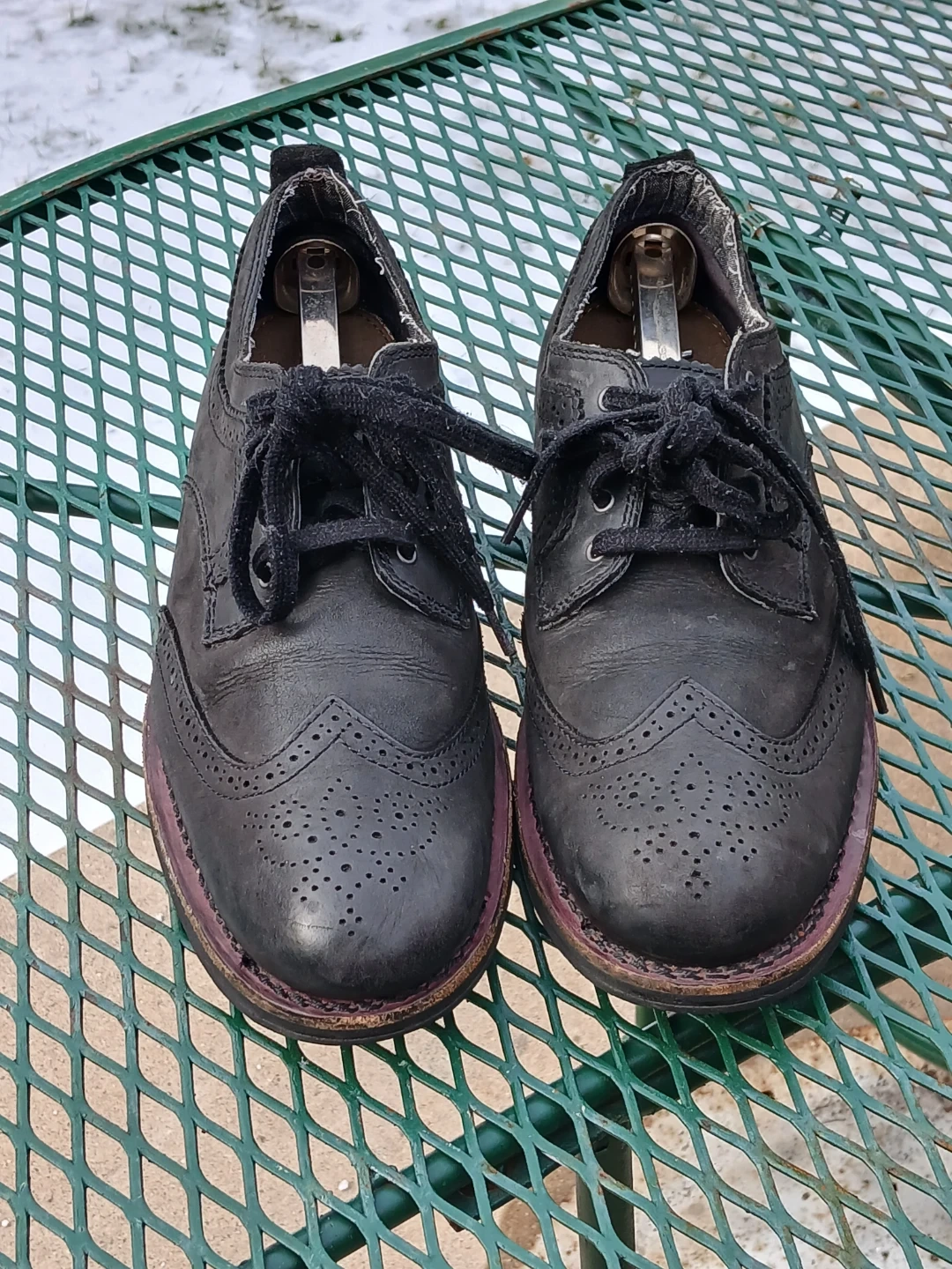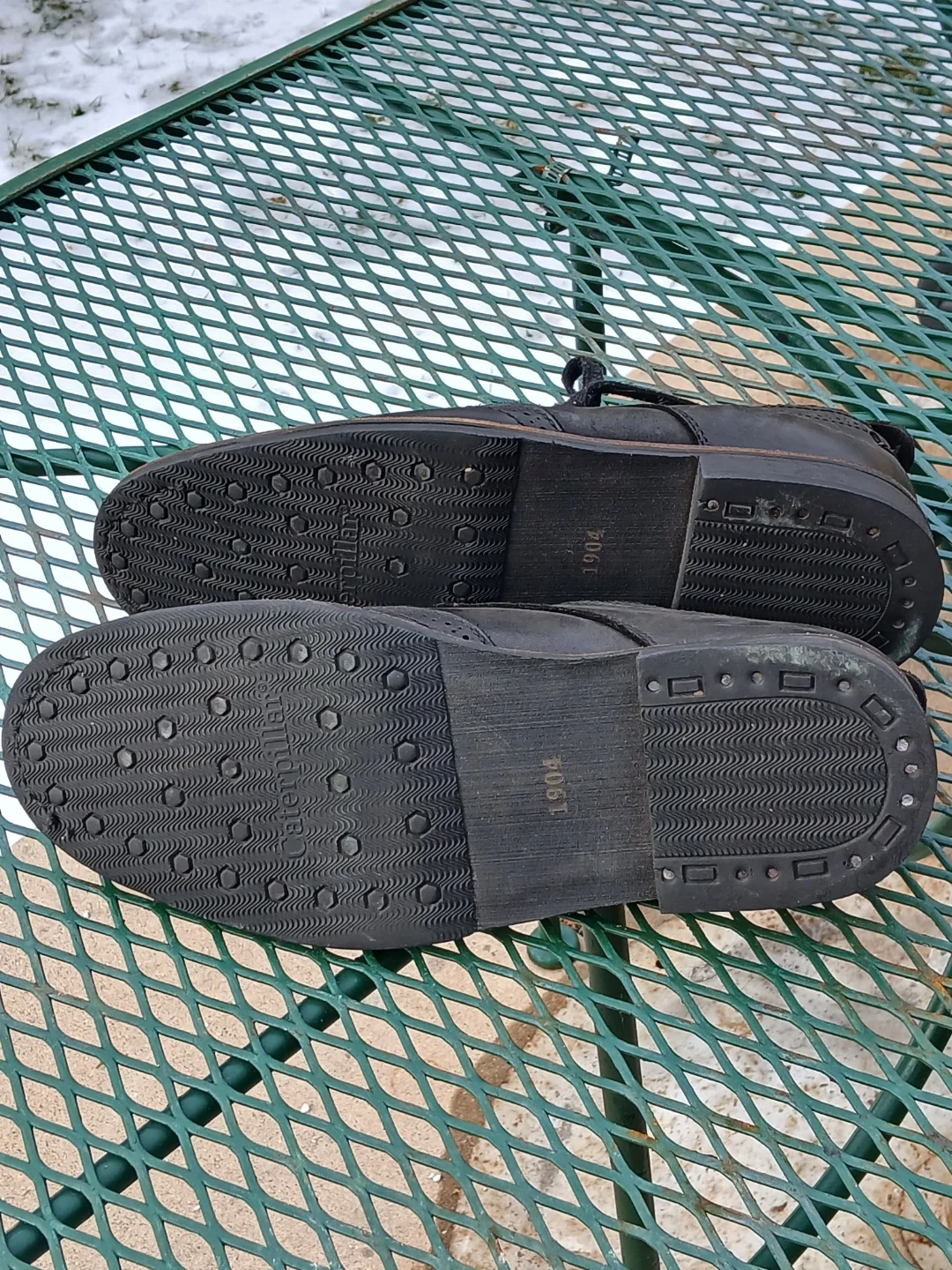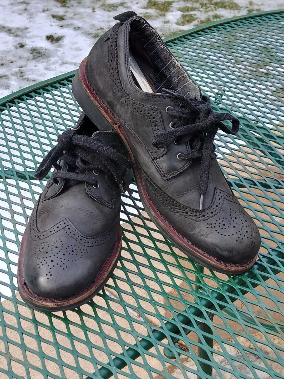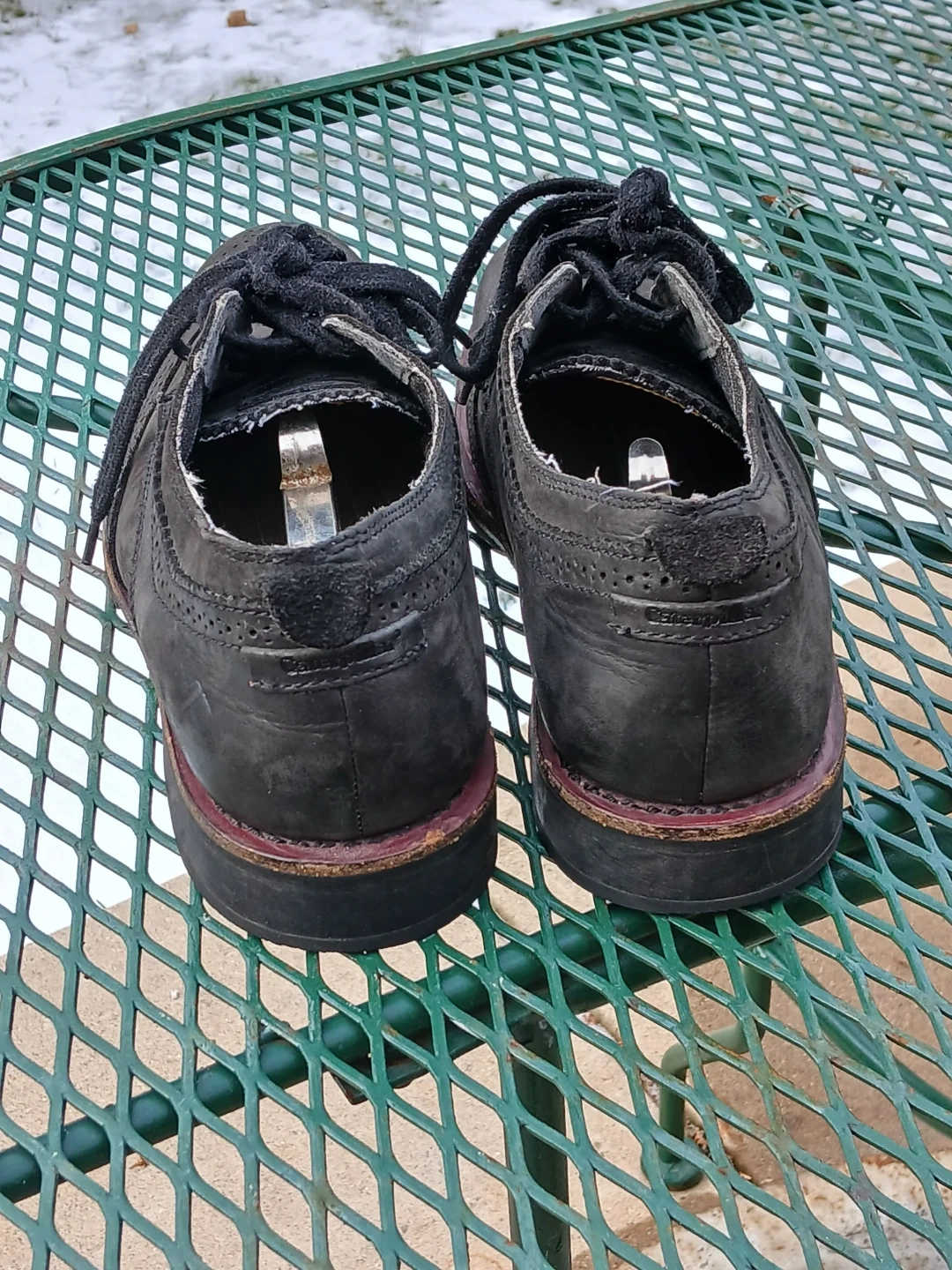 Selling a pair of Caterpillar wingtip shoes in black leather. The soles are durable and have good traction. They are size 10.5. Used like new. CASH only, no zelle, no Paypal.