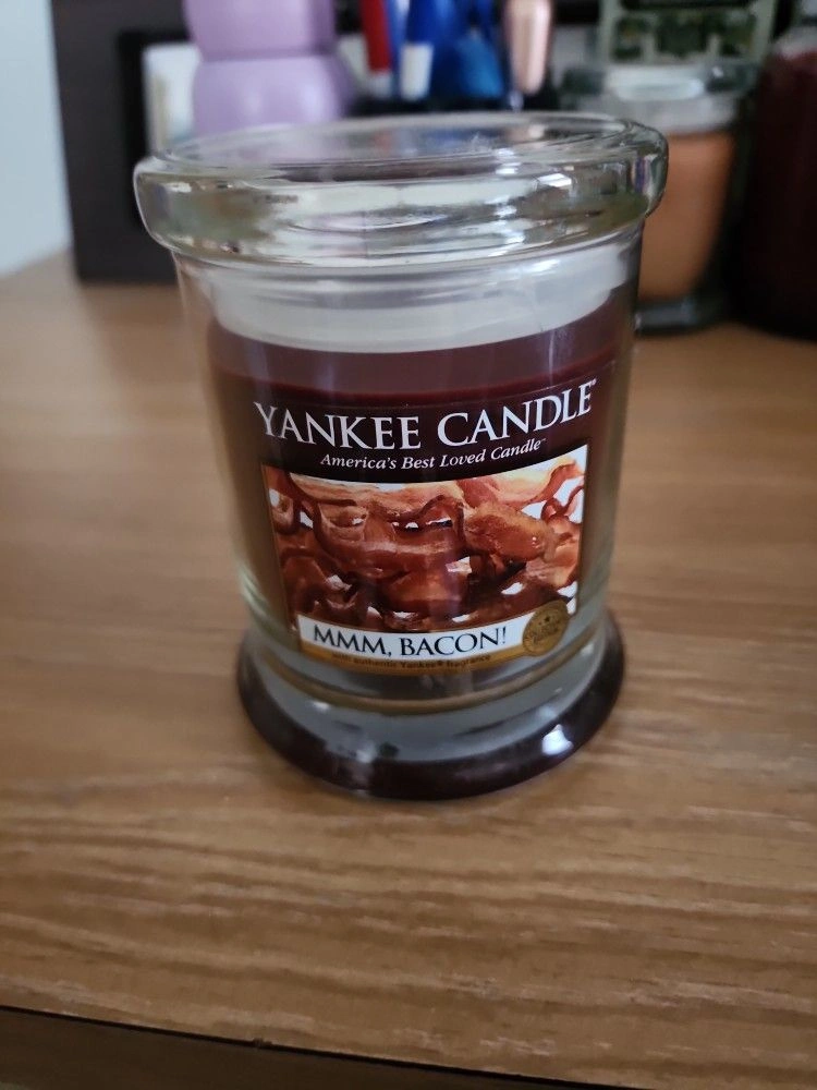 Yankee Candle smells like bacon. Perfect gift for the bacon lover. Rare, retired collection. Color: Brown Size: Medium Brand: Yankee Candle Co.