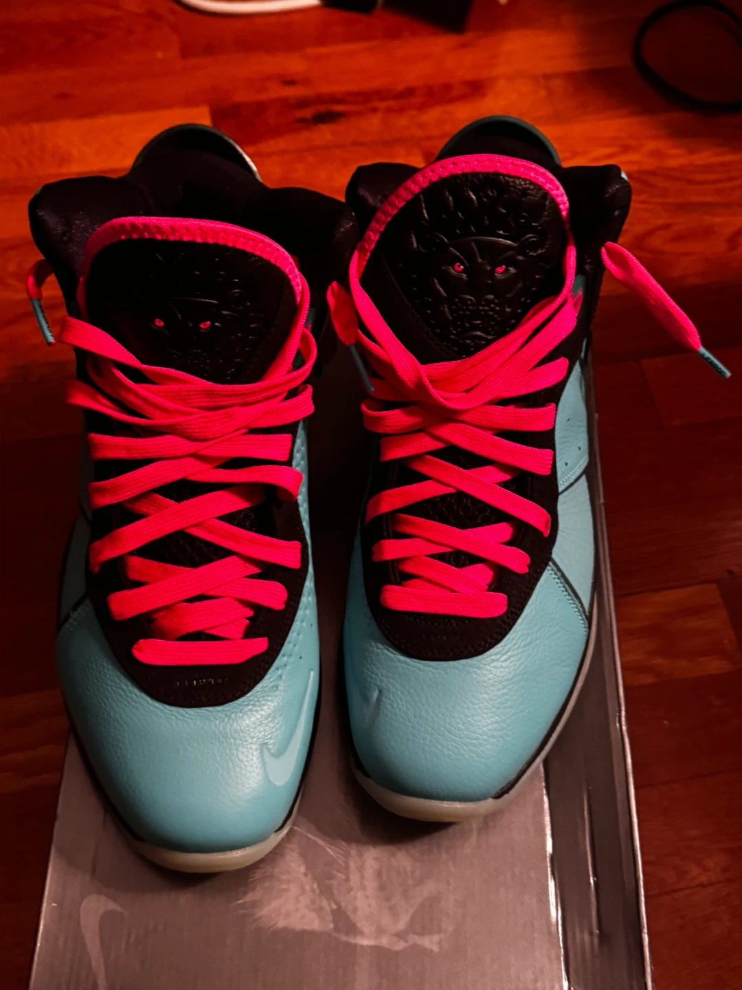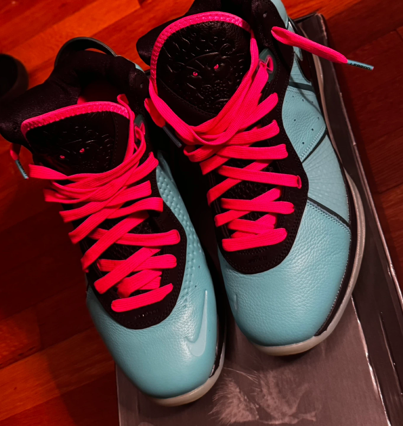 Selling a pair of Nike LeBron 8 South Beach shoes. They come with the original box. The shoes are in good condition and ready for a new owner!