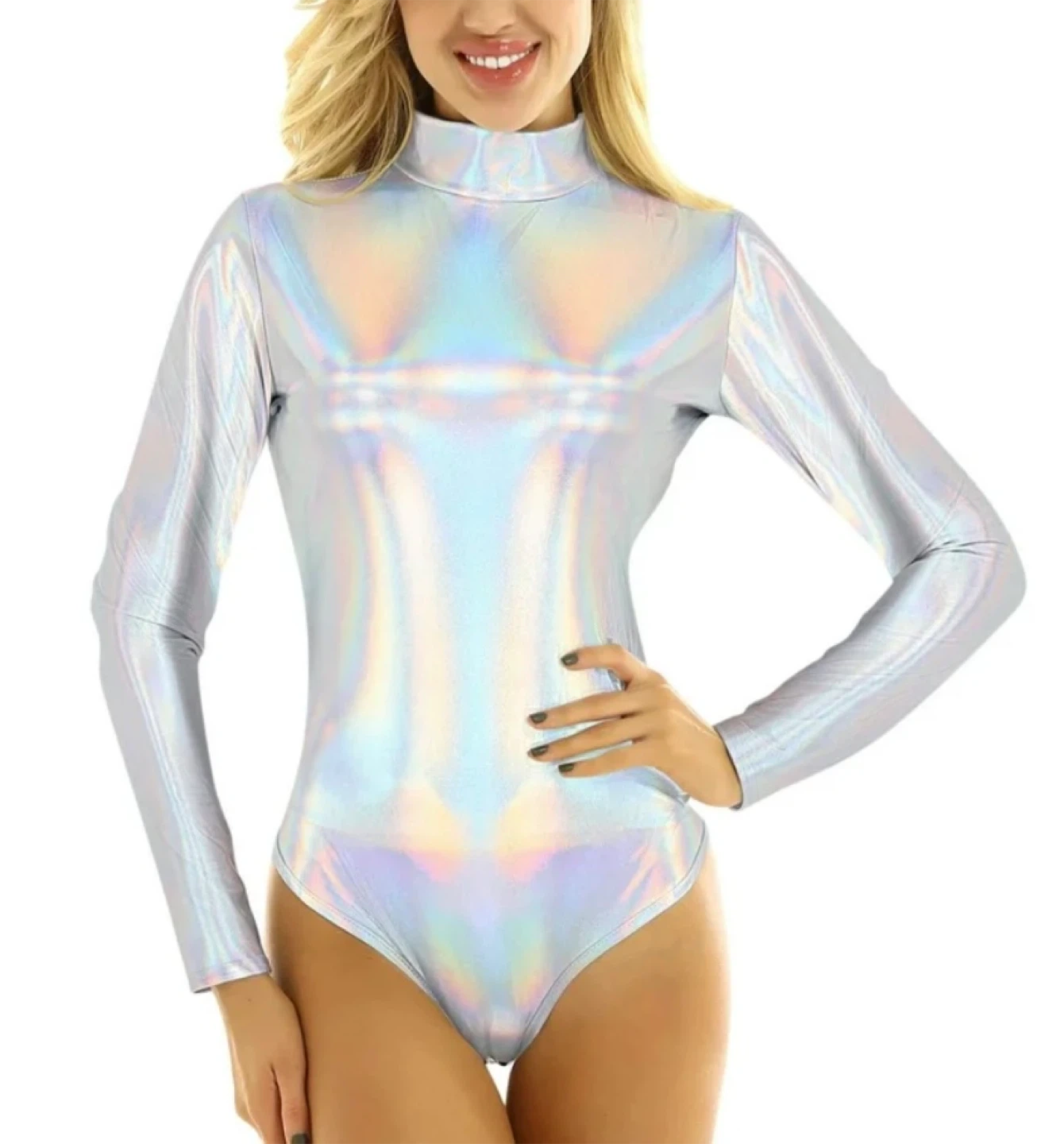Women's Holographic Bodysuit with Long Sleeve