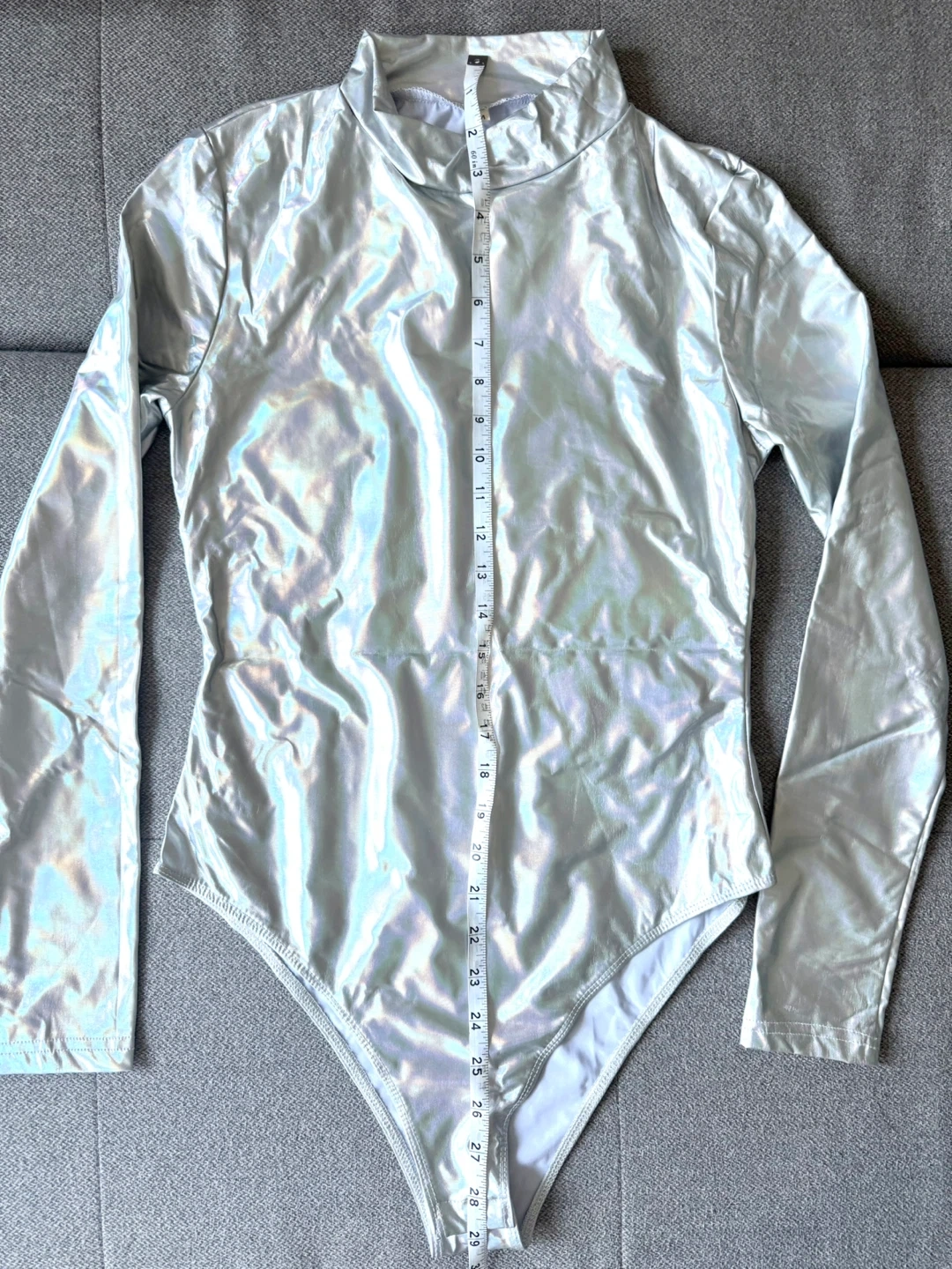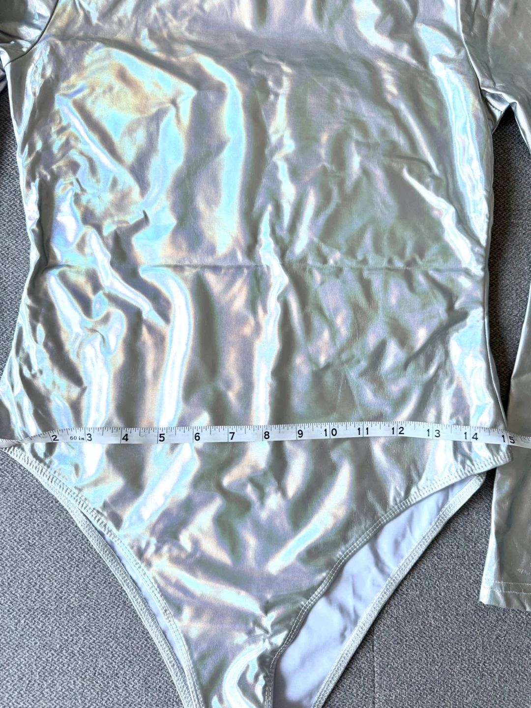 Women's Holographic Bodysuit with Long Sleeve (Silver)