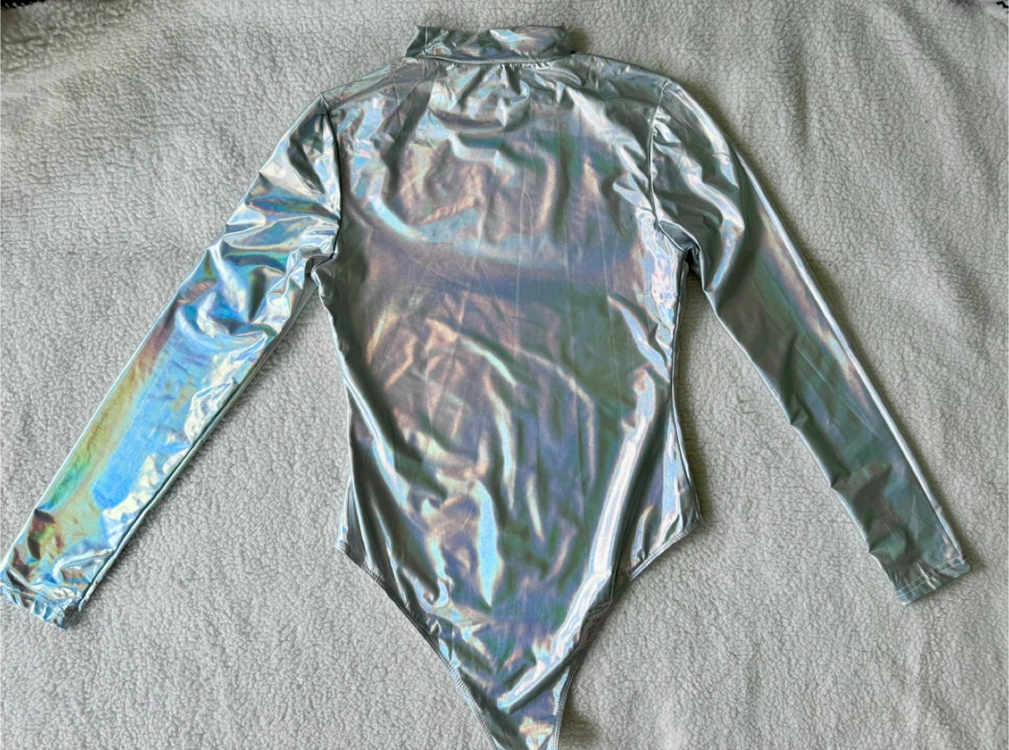 Women's Holographic Bodysuit with Long Sleeve (Silver)