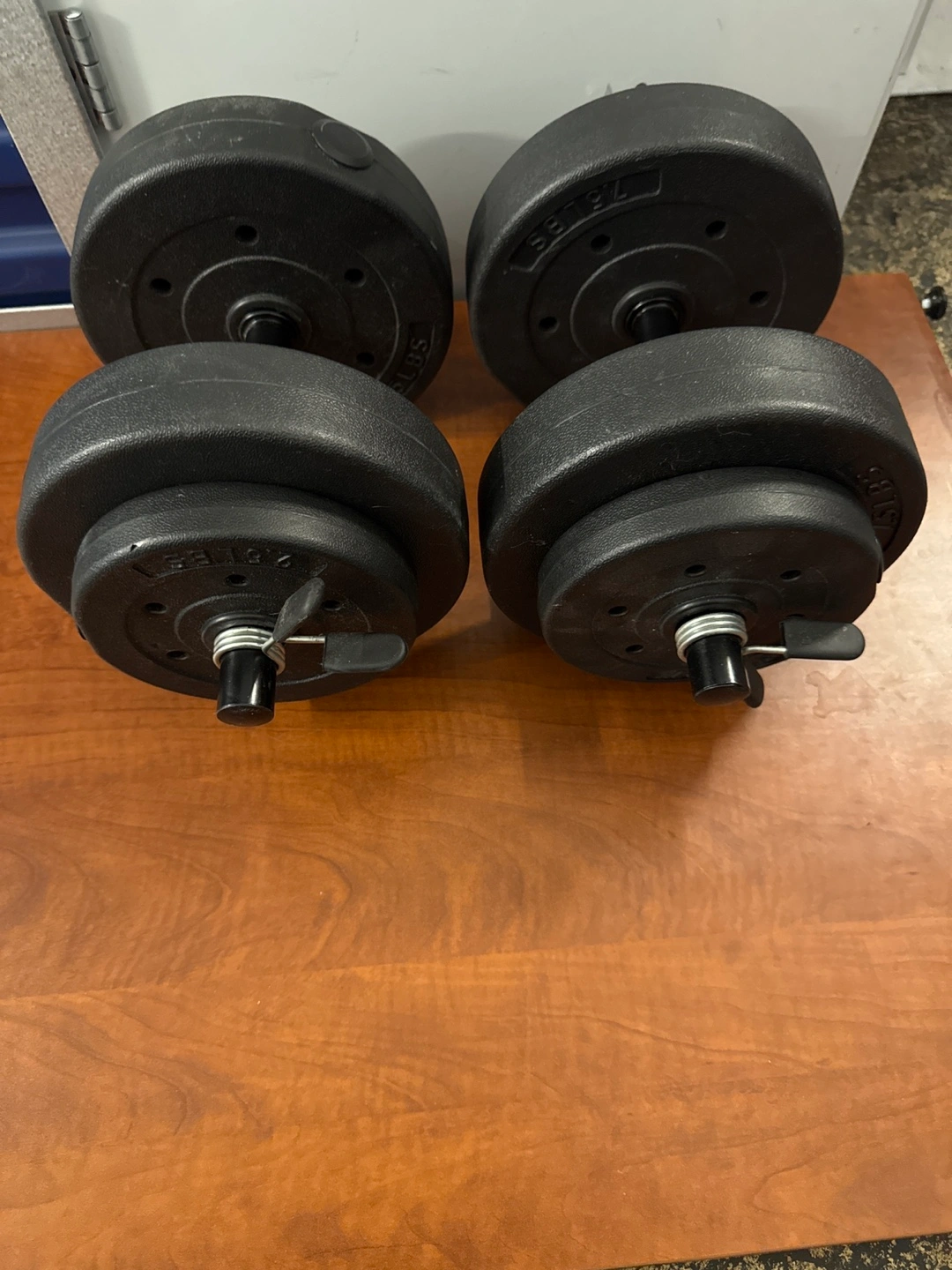 40lbs for set. Vinyl coated plates. Good for home workouts.