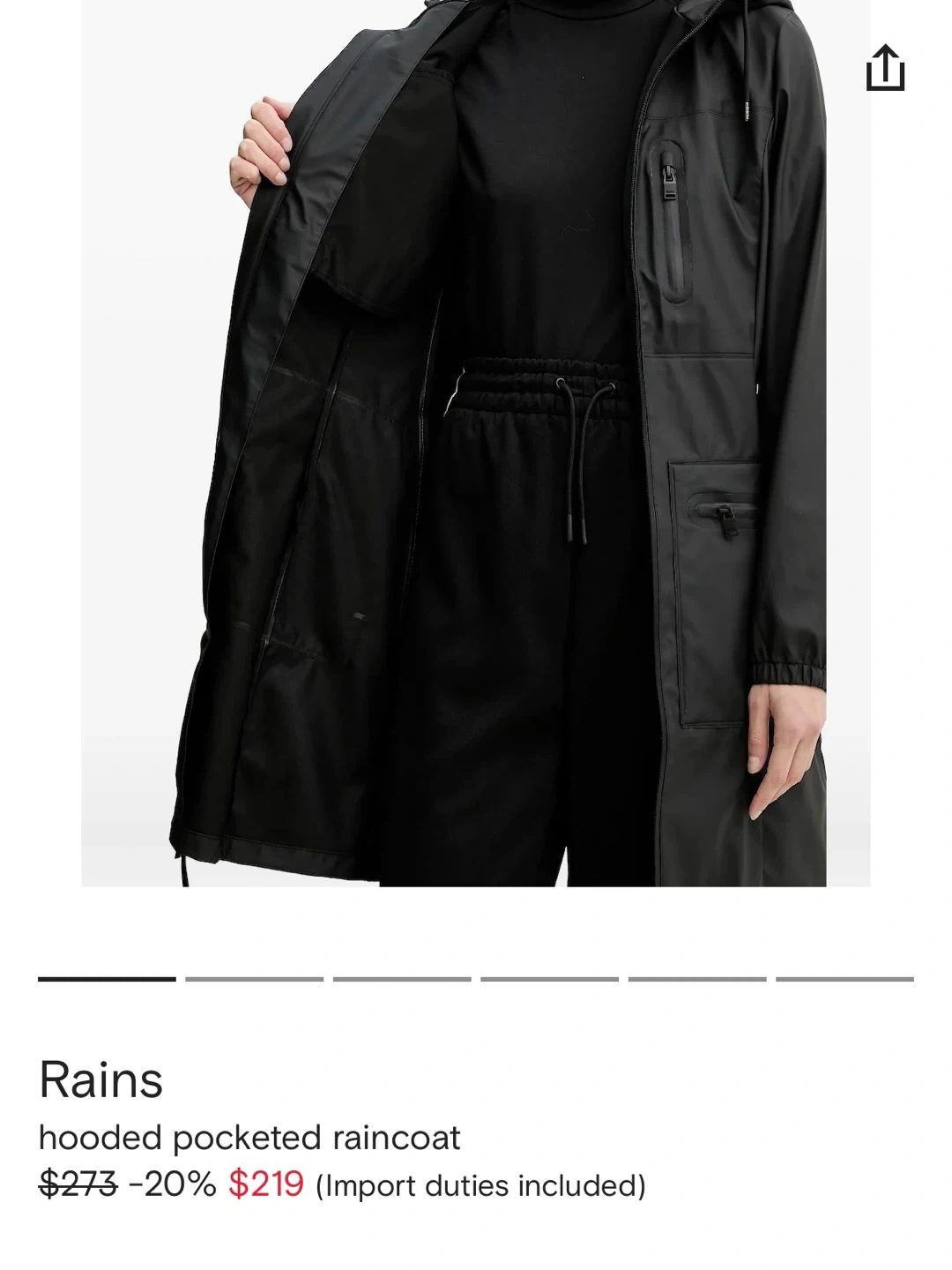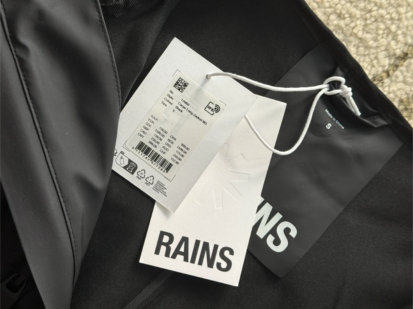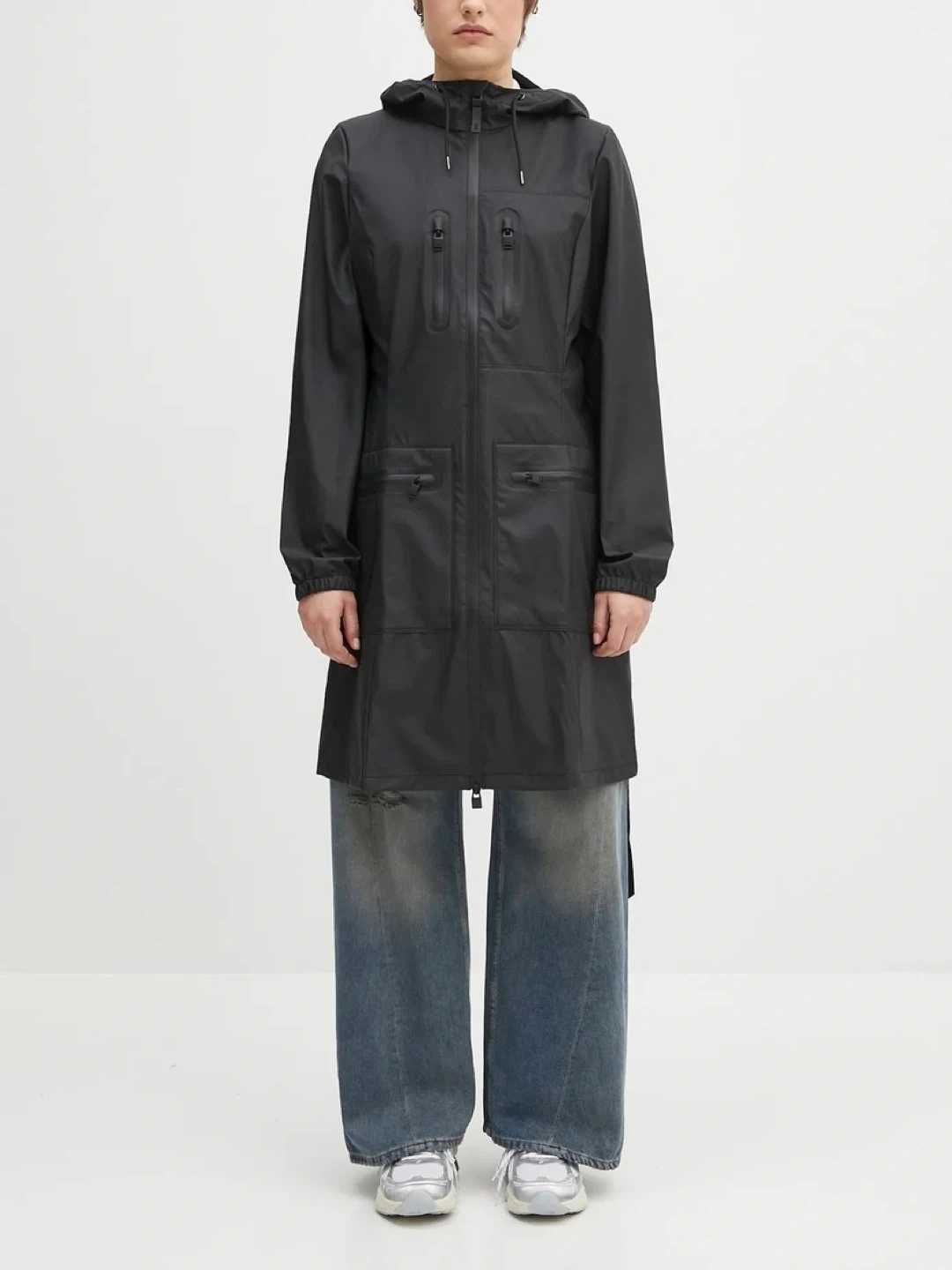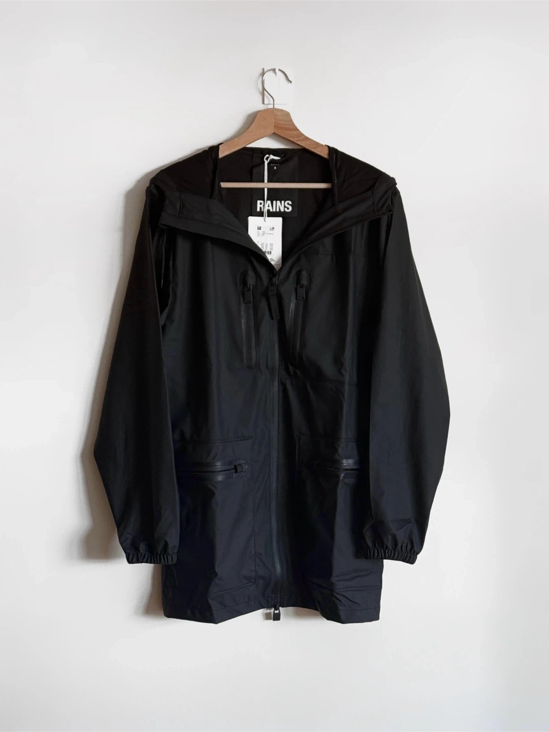 Rains Cargo Long Coat. Hooded pocketed raincoat. Size S. Brand new with tags.