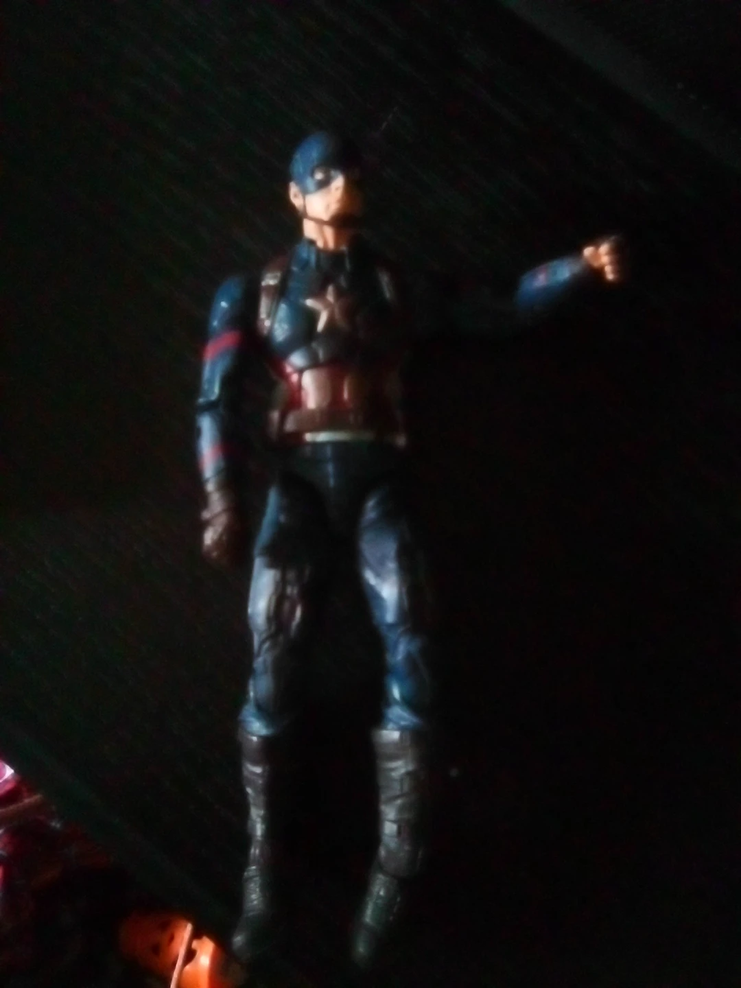 This is a Captain America action figure. It's a detailed toy for fans of the character. Its articulation allows for various poses.