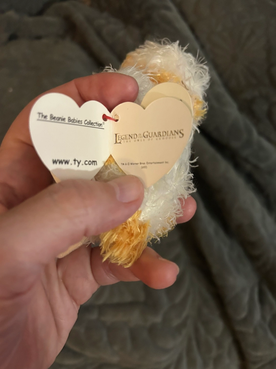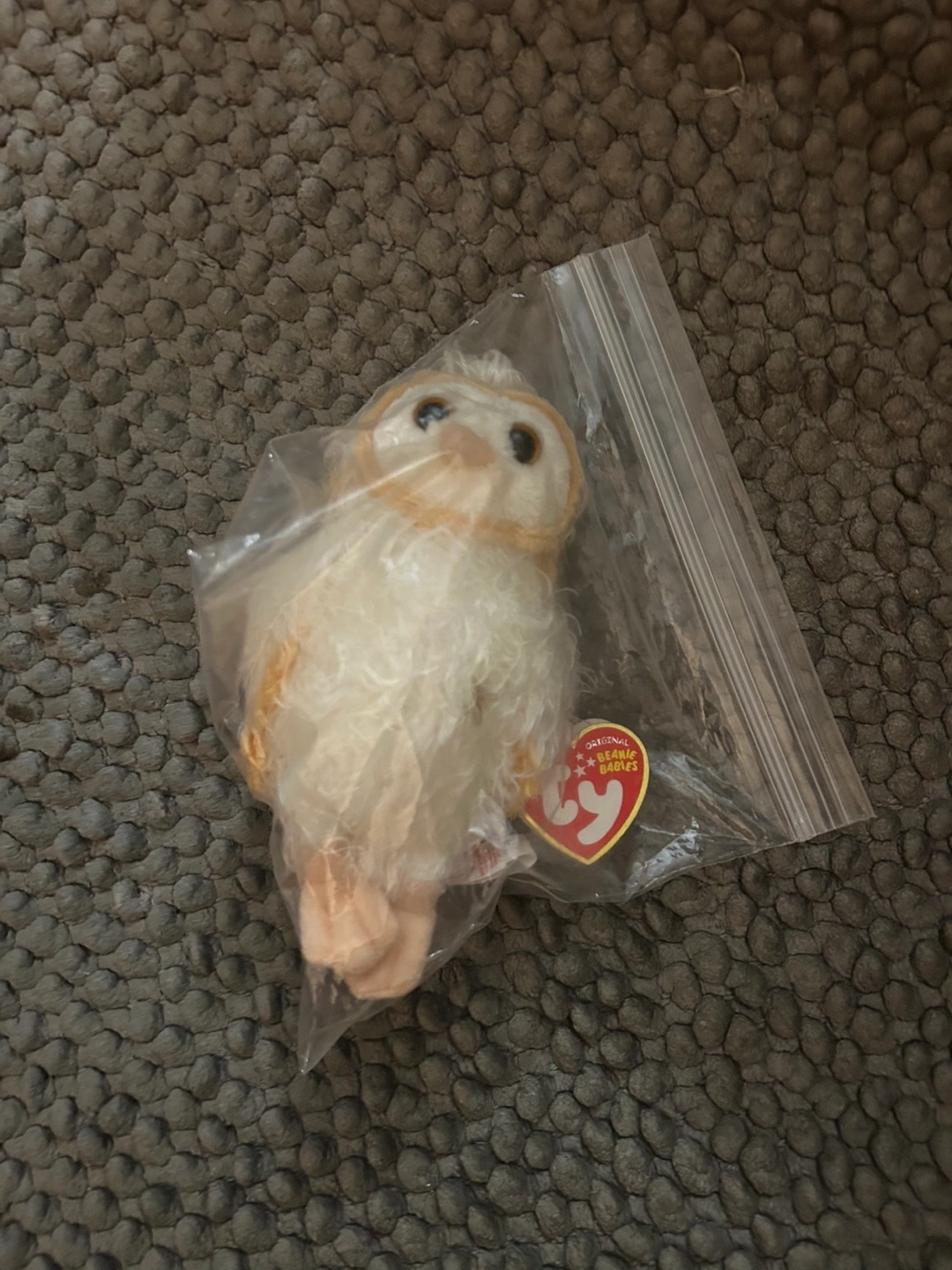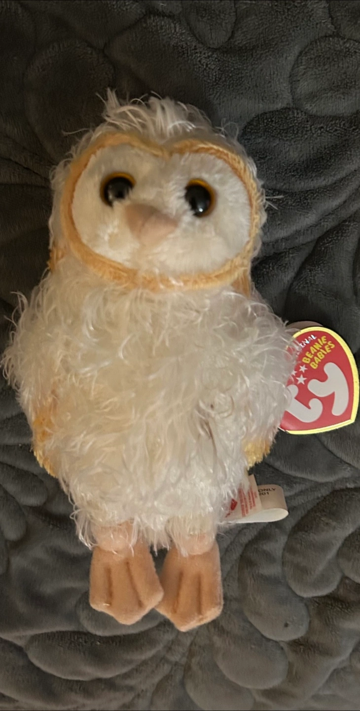 COLLECTIBLE ORIGINAL NEW BEANIE BABIES COLLECTION 6β WHITE/GOLD-YELLOW OWL WITH ORIGINAL TAG. STORED IN A SEALED BAGGIE TO PROTECT IT FROM THE ELEMENTS.