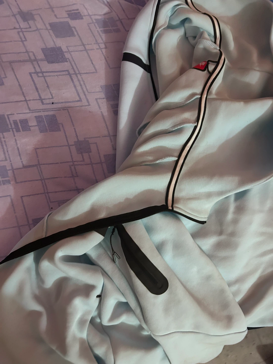 Selling a Nike Sportswear Tech Fleece full zip hoodie and jogger set in a glacier blue color! It's a stylish and comfortable set, perfect for everyday wear or workouts. The tech fleece material is lightweight and warm. Originally bought for $239