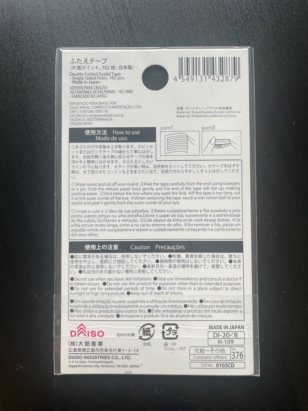 Double folded eyelid tape. 102 pieces per package. Made in Japan. Flexible fit. One-side point. Trade or for sale