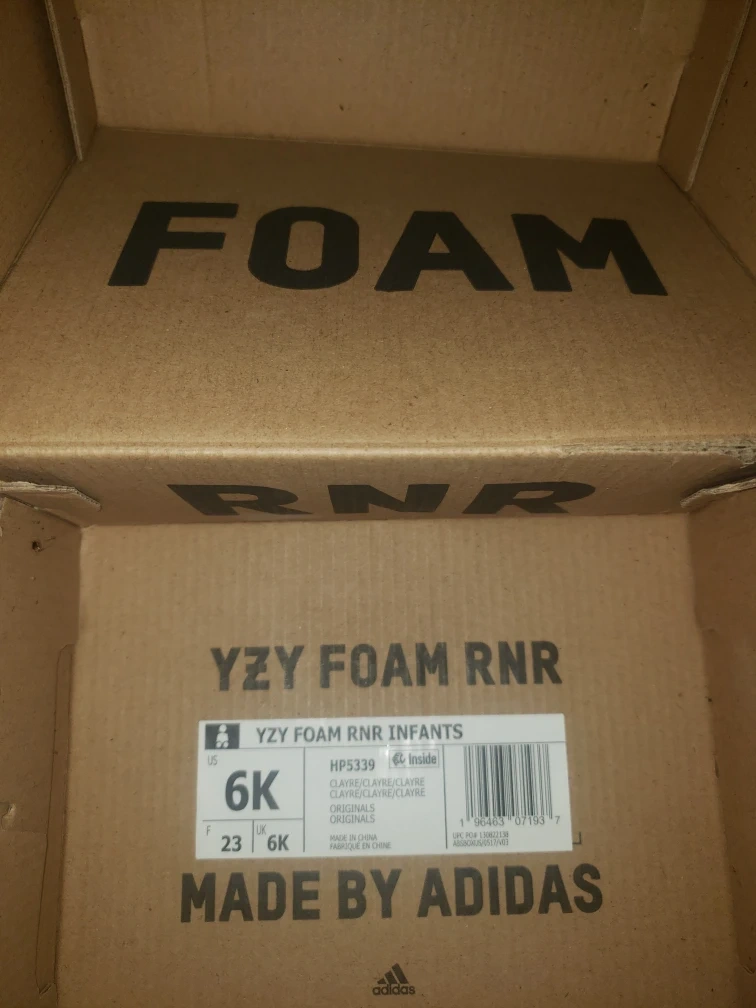 Selling a pair of Yeezy Foam RNR for infants in size 6K. They come with the original box. Really good condition