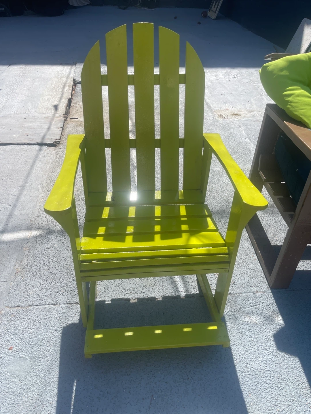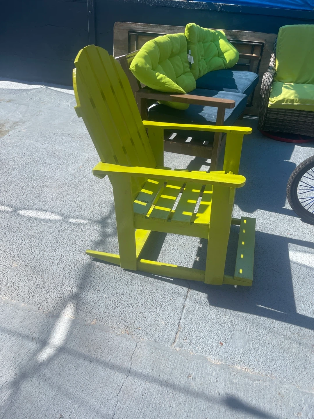 Selling a bright yellow Adirondack chair! It's perfect for relaxing outdoors and adding a pop of color to your patio or garden. It could be done in any color or Custom made .