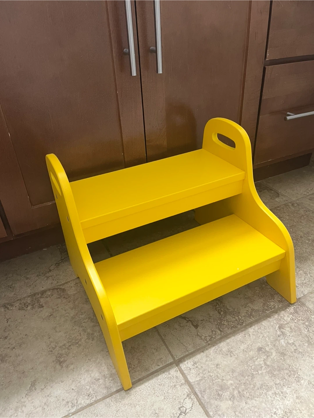 Here's a bright yellow step stool, perfect for helping your little one reach new heights! It's in good condition and ready for a new home. I bought it at IKEA.
