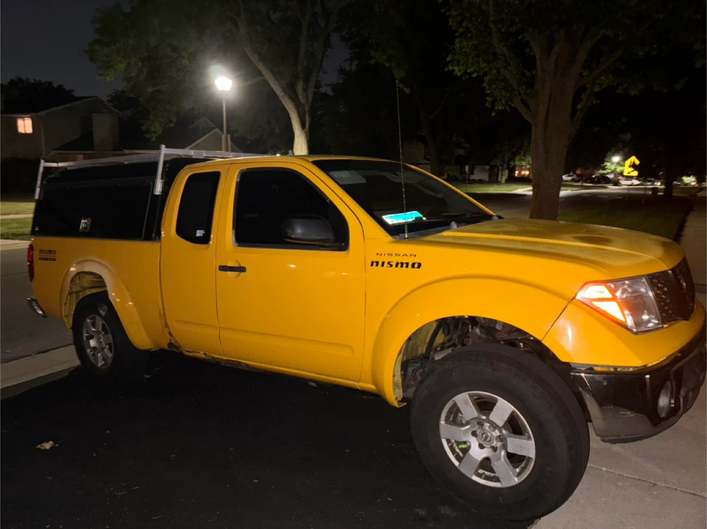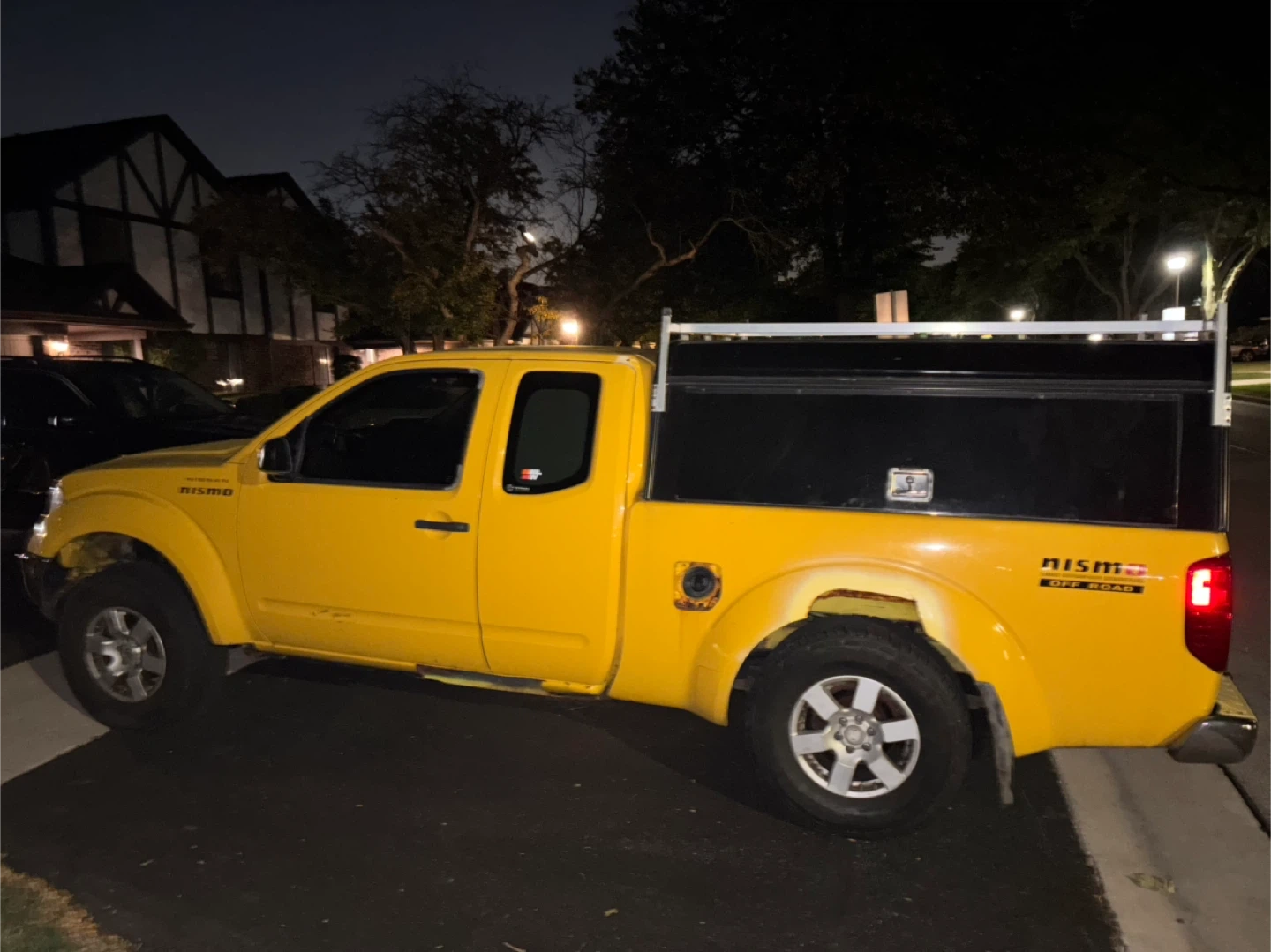 Selling a yellow Nissan Frontier Nismo Off Road truck, as pictured. It has a black truck bed cover.