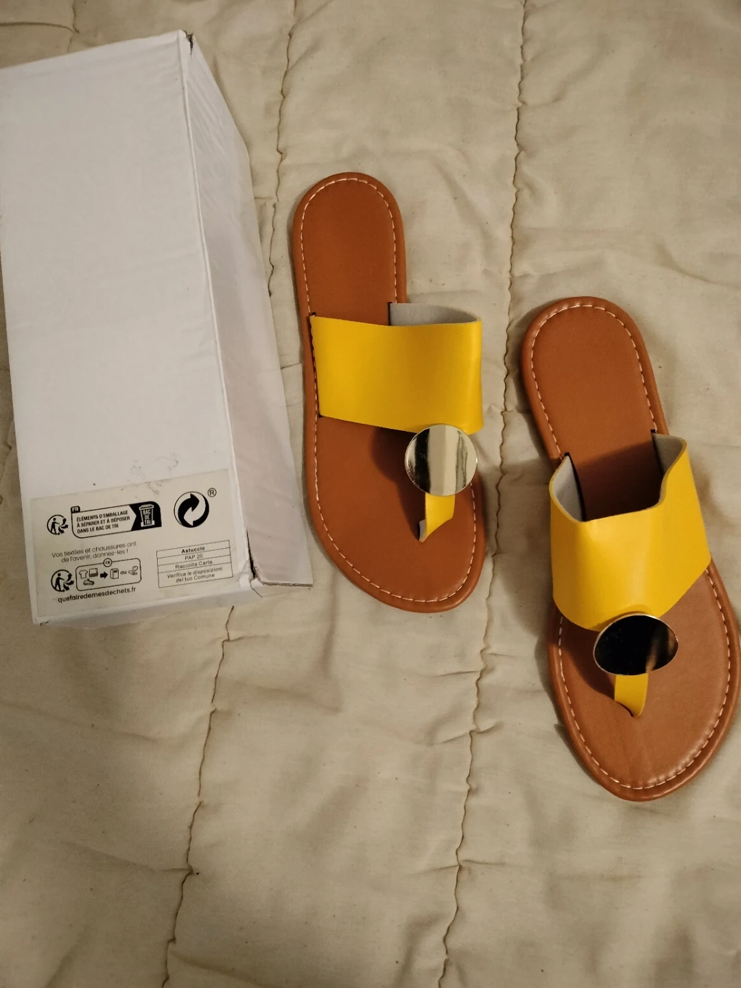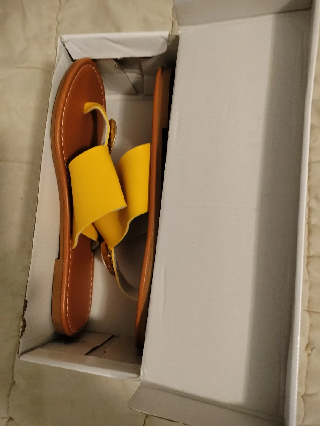 Comfortable yellow thong sandals with a stylish buckle accent. These slides are perfect for everyday wear. Women's size 8.