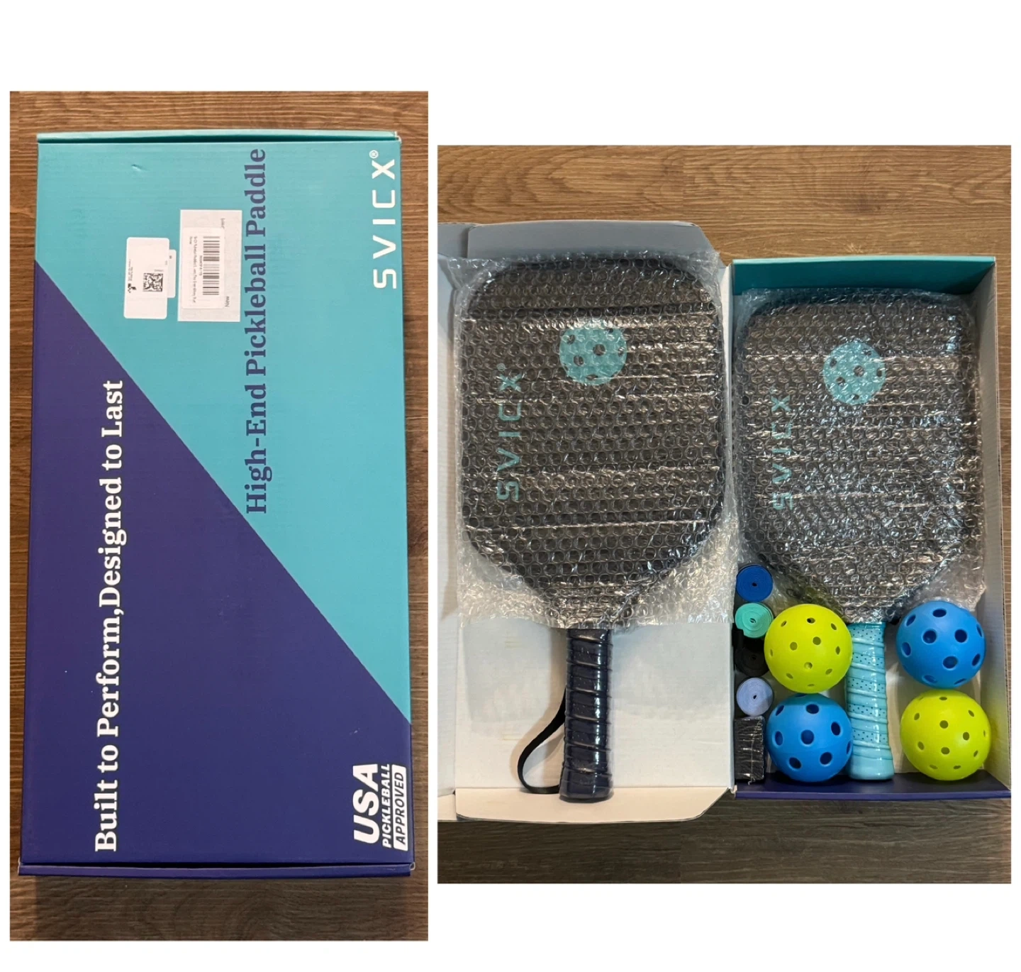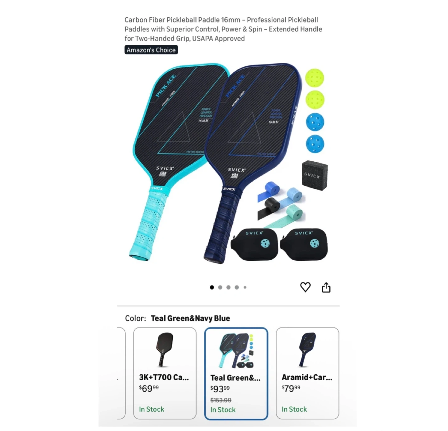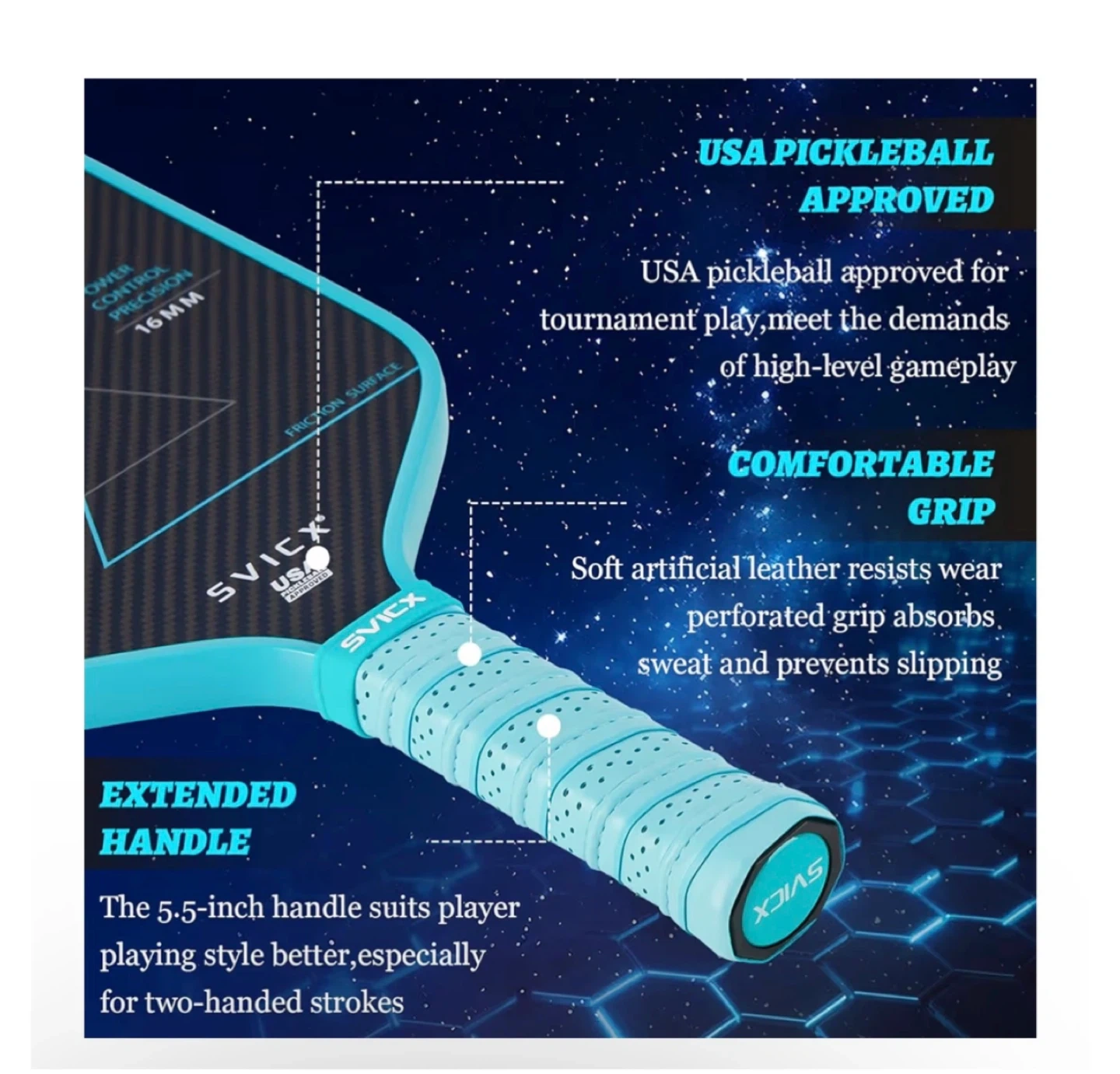 Brand new Carbon Fiber Pickleball Paddle 16mm – Professional Pickleball Paddles with Superior Control, Power & Spin – Extended Handle for Two-Handed Grip, USAPA Approved - Teal Green&Navy Blue