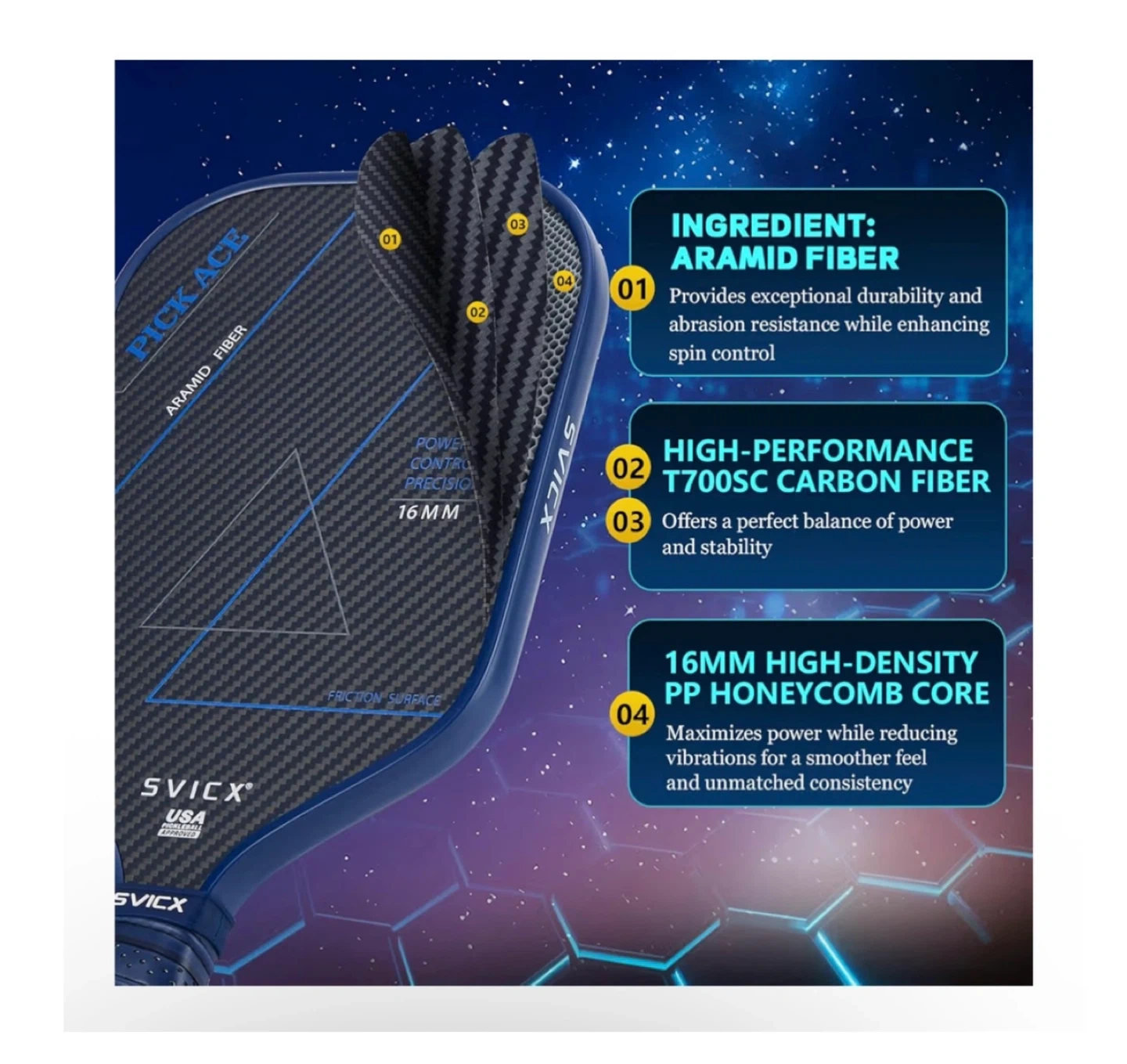 Brand new Carbon Fiber Pickleball Paddle 16mm