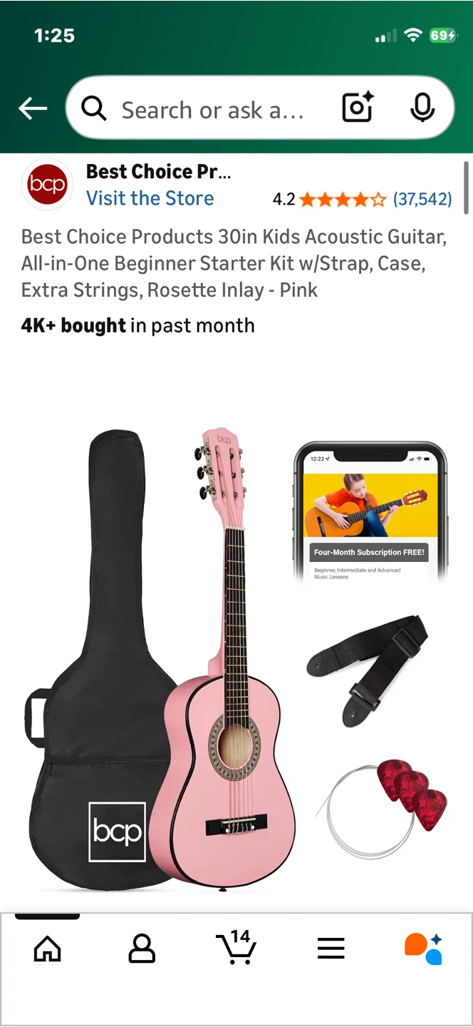 Selling a Best Choice Products 30in kids acoustic guitar in pink! It's an all-in-one beginner starter kit that comes with a strap, case, and extra strings. Originally bought for $60.99