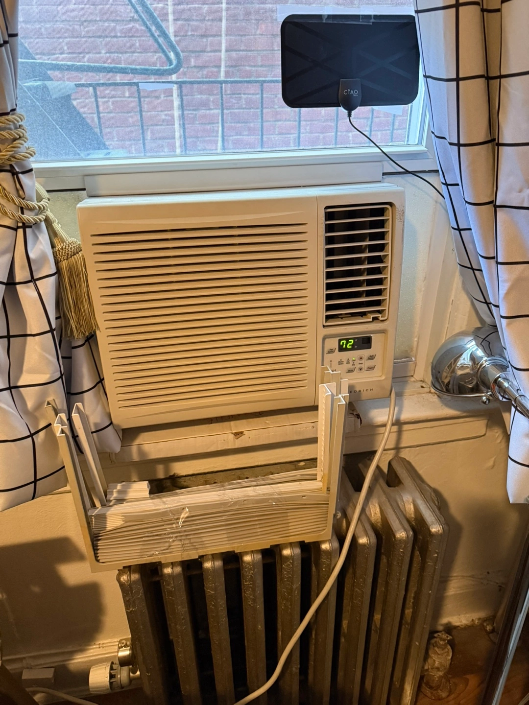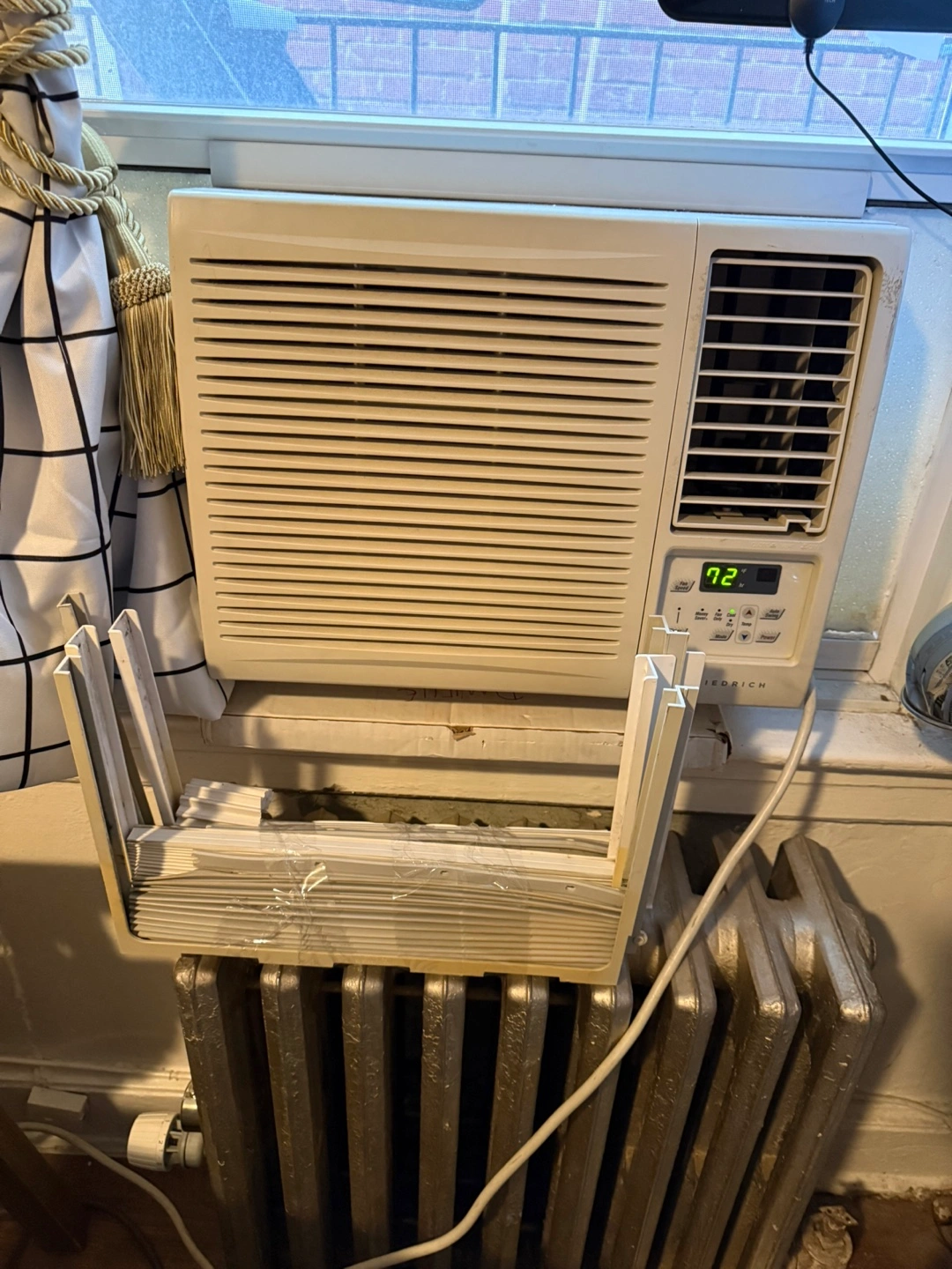 Used window air conditioner. 7,800 BTU cooling capacity. Includes window brackets. Model CP08F10-A.Works great.