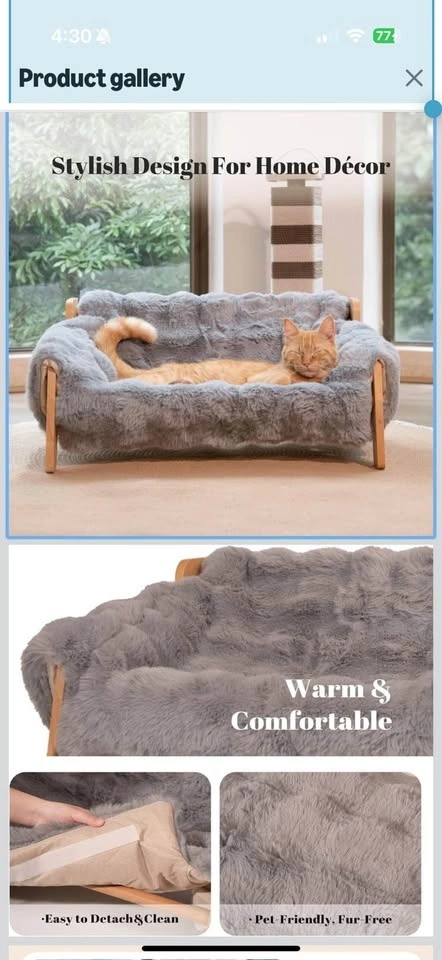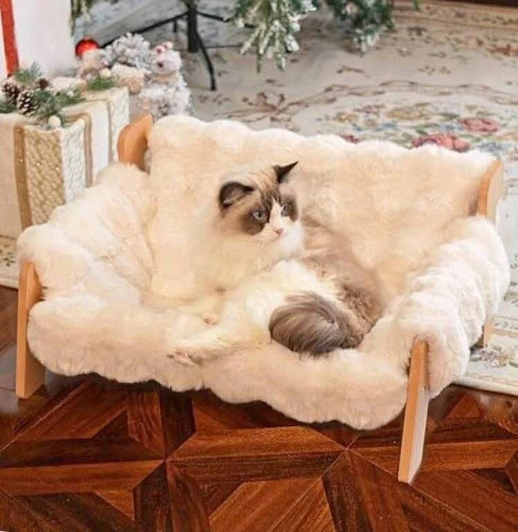 CHEERHOME PETS Elevated Cat Couch Bed for Indoor Cats, Wooden Cat Sofa with Removable Washable Fluffy Cover Raised Kitty Lounge Chair Suitable for Puppy, Cat Sofa Off-White - Estimated MSRP: $60+tax