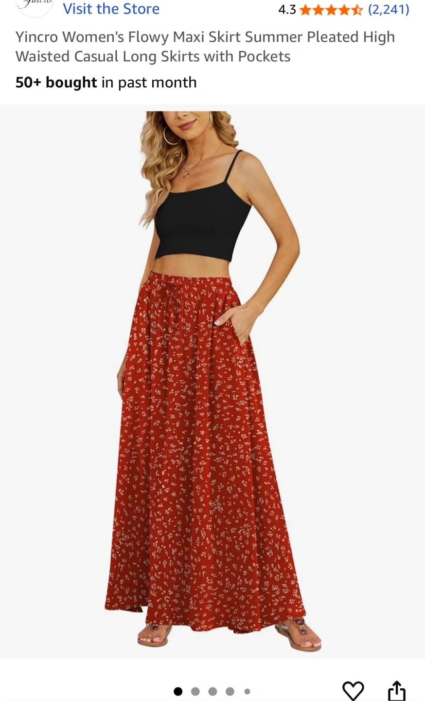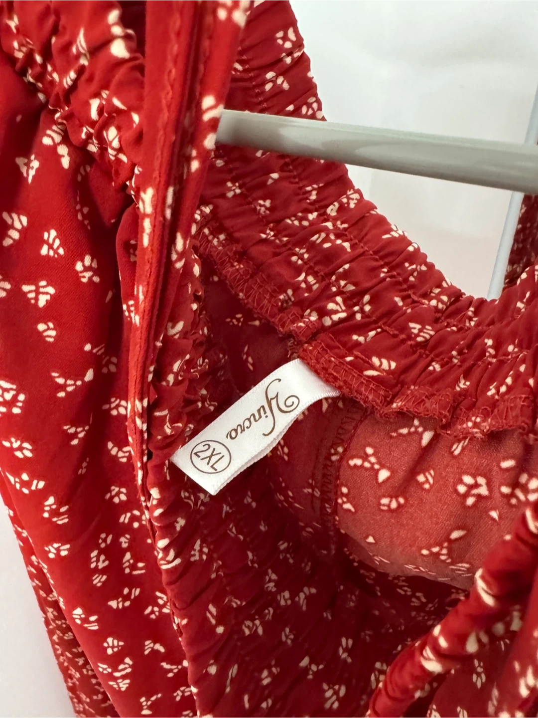Selling a Yincro Women's flowy maxi skirt in size 2XL! This summer pleated high waisted casual long skirt has pockets. It's a beautiful red color with a white floral pattern, perfect for a casual or dressed-up look. Like new! Fits like xl.